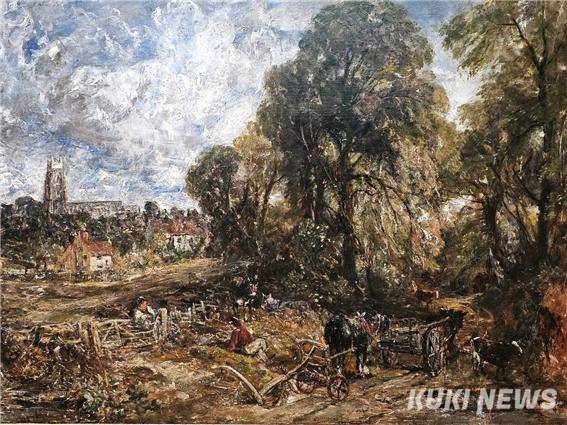 거칠고 생생한 표면 질감은 단지 붓으로 그린 풍경이 아니라 실제 자연을 눈앞에 펼쳐 놓은 듯한 감각을 불러일으킨다. 자연 요소와 인공 건축물이 동시에 어우러진 이 장면 속에는 콘스터블이 꿈꾸던 시골의 조화로운 이상향이 고요하게 배어 있다. 그는 자연을 낭만화하거나 이상화하는 대신, 있는 그대로의 아름다움 속에서 인간과 환경이 어떻게 어울릴 수 있는지를 끊임없이 고민한 화가였다.
