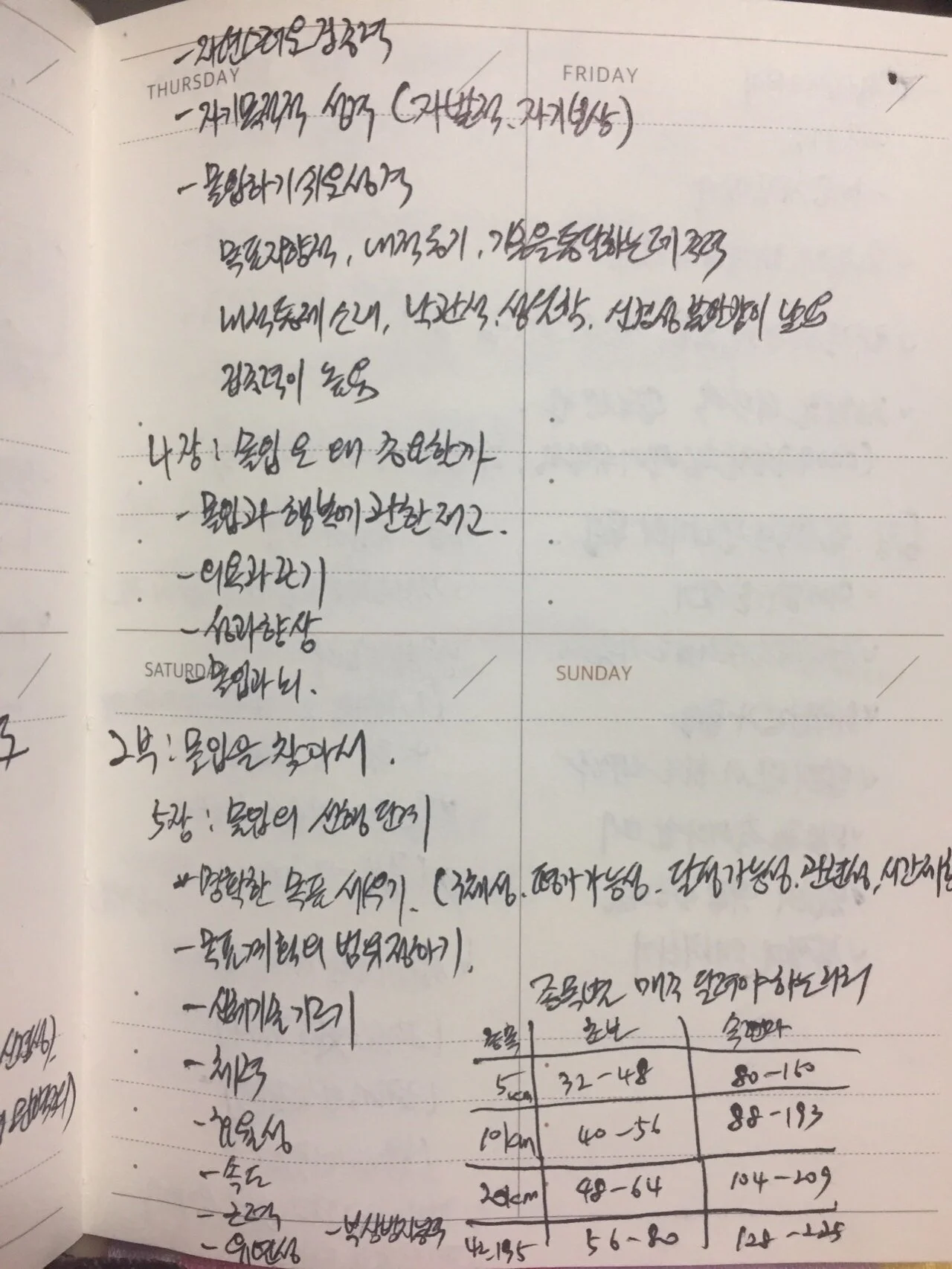 잘뛰는 선배들이 몇분 계시고, 사촌동생도 써브3(sub three)이다. 잘 뛰는 환경과 유전적인 형질은 갖춘듯하다. 나도 잘했는데(30년전에), 다시 잘하고 싶어 시작했다. 우선 글로 배우고..ㅋㅋ