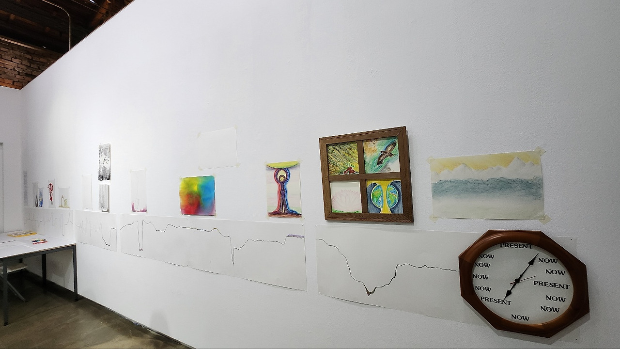 통합치유 심리상담가로 앞만 보고 달려온 윤혜정 작가님은 일신 상의 변고로 자신의 삶을 되돌아보게 됩니다. 그리고 자신의 삶의 여정을 하나의 그래프로 나타내며 삶의 중요한 순간에 느꼈던 감정들을 부분적으로 그림으로 담아내고 어두운 감정에서 빠져나오는 치유의 경험을 하게 됩니다. 이번 전시회에서 관객들도 작가님이 제시하는 방법에 따라 자신의 힘들었거나 고통스러웠던 기억을 그림으로 나타내며 치유를 경험하게 하는 관객 참여 프로그램이 같이 진행되고 있습니다. 결국 작가 자신의 작품과 관객 참여 작품이 하나가 되어 윤혜정 작가님의 작품 '삶을 그리다'가 완성됩니다.