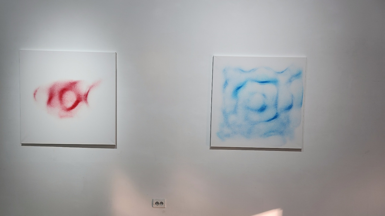 오시면 저와 동생의 작품뿐만 아니라 다른 4분의 시민 작가분들의 작품도 감상하실 수 있습니다. KAIST 항공우주공학과 교수님이신 이덕주 교수님은 과거에 실험 도중에 예기치 않게 실수로 찍혀 나온 파동이 굉장히 아름다운 무늬를 만든 것을 보시고 영감을 받아 작품을 만드셨습니다. 인생의 결함이나 고통으로 보이는 것도 아름다움일 수 있고 이는 물질과 비물질 모두에 적용되는 세상의 이치라는 점을 작품으로 표현하고 싶으셨다고 합니다.