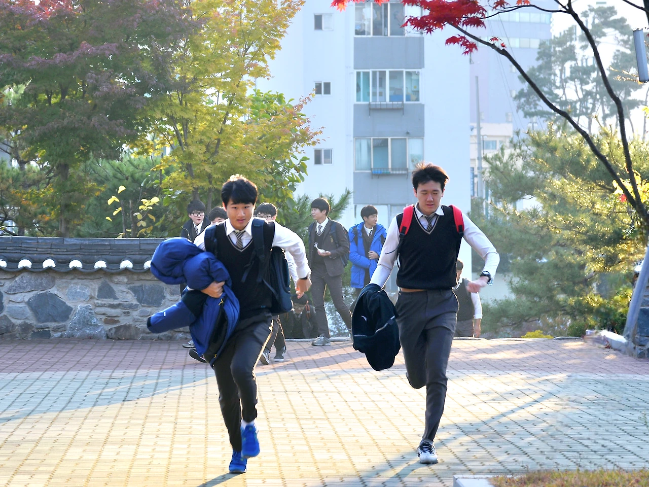 아침 종이 막 치고 있는 순간 아이들이 조례 시간에 늦지 않기 위해 달리는 순간을 포착했다. 교사라서 찍을 수 있는 사진이어서 이 사진을 참 좋아한다.