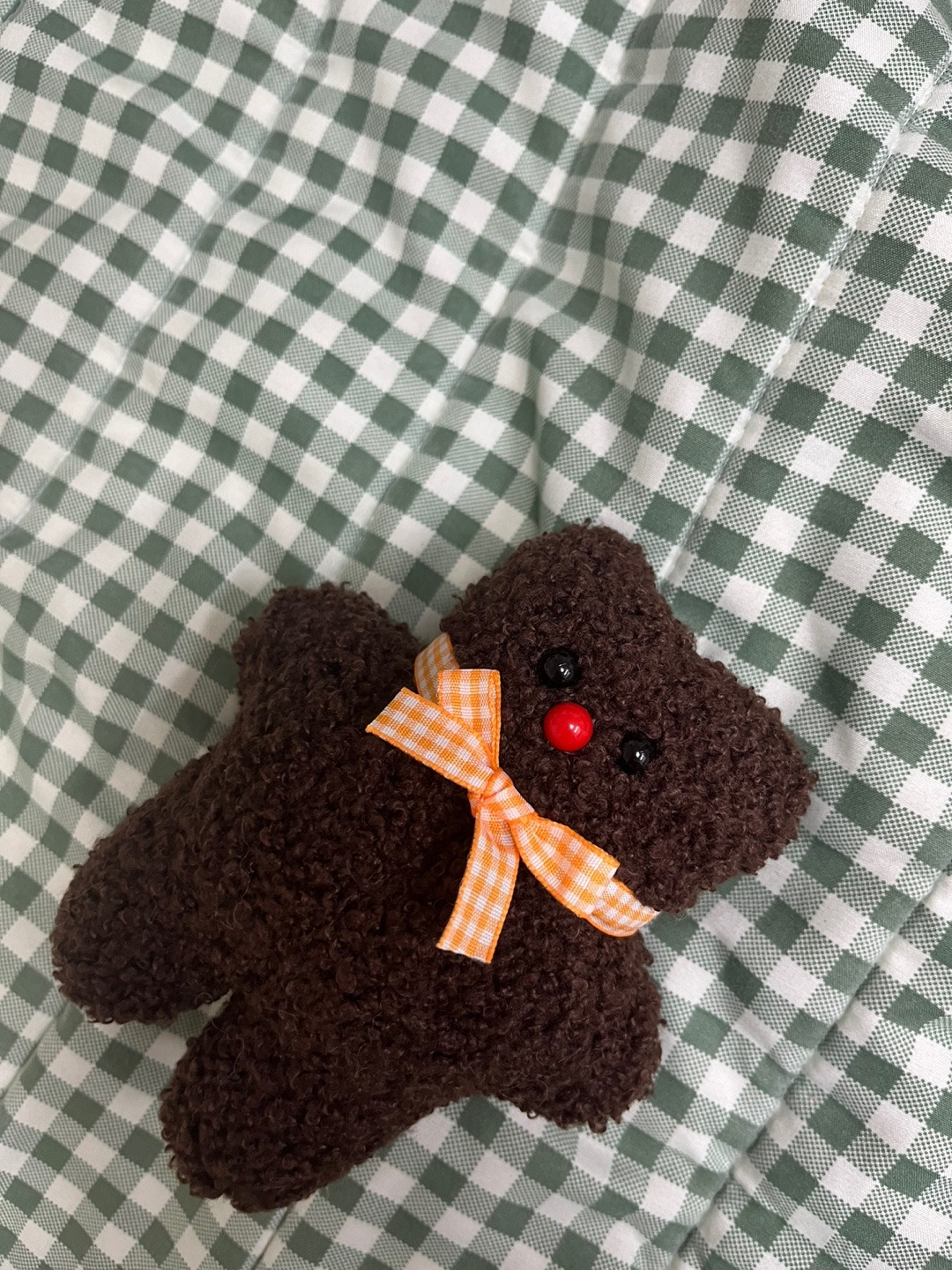 바느질 솜씨가 영 별로였지만 아주 다행히 저 폭신한 털천이 내 어설픈 실력을 조금은 가려줬다. 멍해 보이는 눈알도 한몫한다. 지금 내 첫 인형은 침대 옆 탁상에 올라 나의 꿈자리를 지켜주는 소중한 지킴이가 됐다.