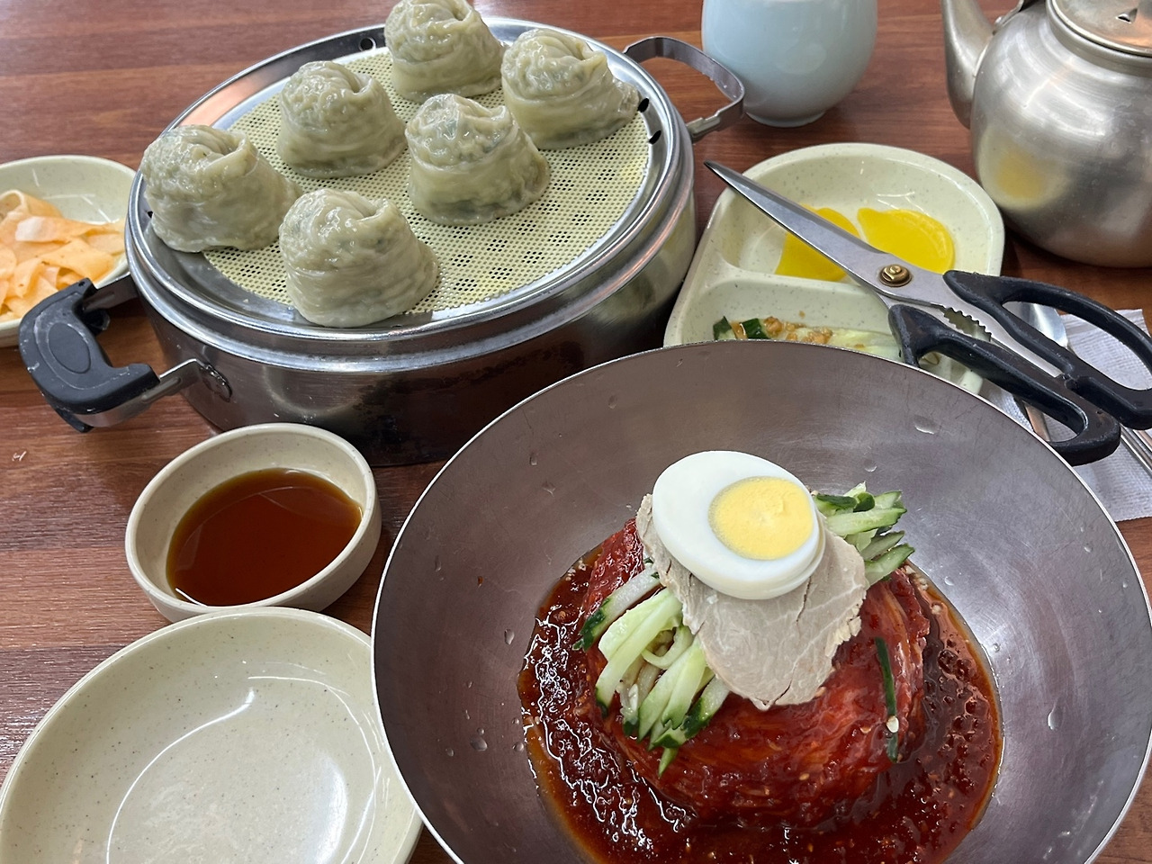 누가 부산에 왔으면 국밥과 밀면을 먹어야 한다는 말이 떠올랐다. 혼밥을 못하는 건 아니지만, 굳이 사람 많은 식당에 혼자 가 식사를 하는 스타일이 아니라 조금 고민이 되었다. 하지만 이때가 아니면 또 언제 지역 맛집을 갈까 싶어 역 근처에 밀면으로 유명한 식당을 찾아갔다. 평일이었어도 사람들이 북적거렸고 나는 그 틈 사이에서 혼자 4인용 테이블을 차지하여 밀면 한 그릇과 만두 한 판을 시켜 먹었다. 앞자리에 같이 앉는 사람이 없으니 가끔 다른 테이블 손님이랑 눈이 마주치곤 했는데, 그게 민망해 눈을 내리깔고 먹으면서도 언제가 부터는 당당하게 주변 사람들을 구경하며 먹었다. 가족과 함께 온 사람, 연인과 함께 온 사람, 또 나처럼 혼자 온 사람 등등... 다양한 집단의 사람들이 함께 나와 같이 부산의 맛을 즐겼다.