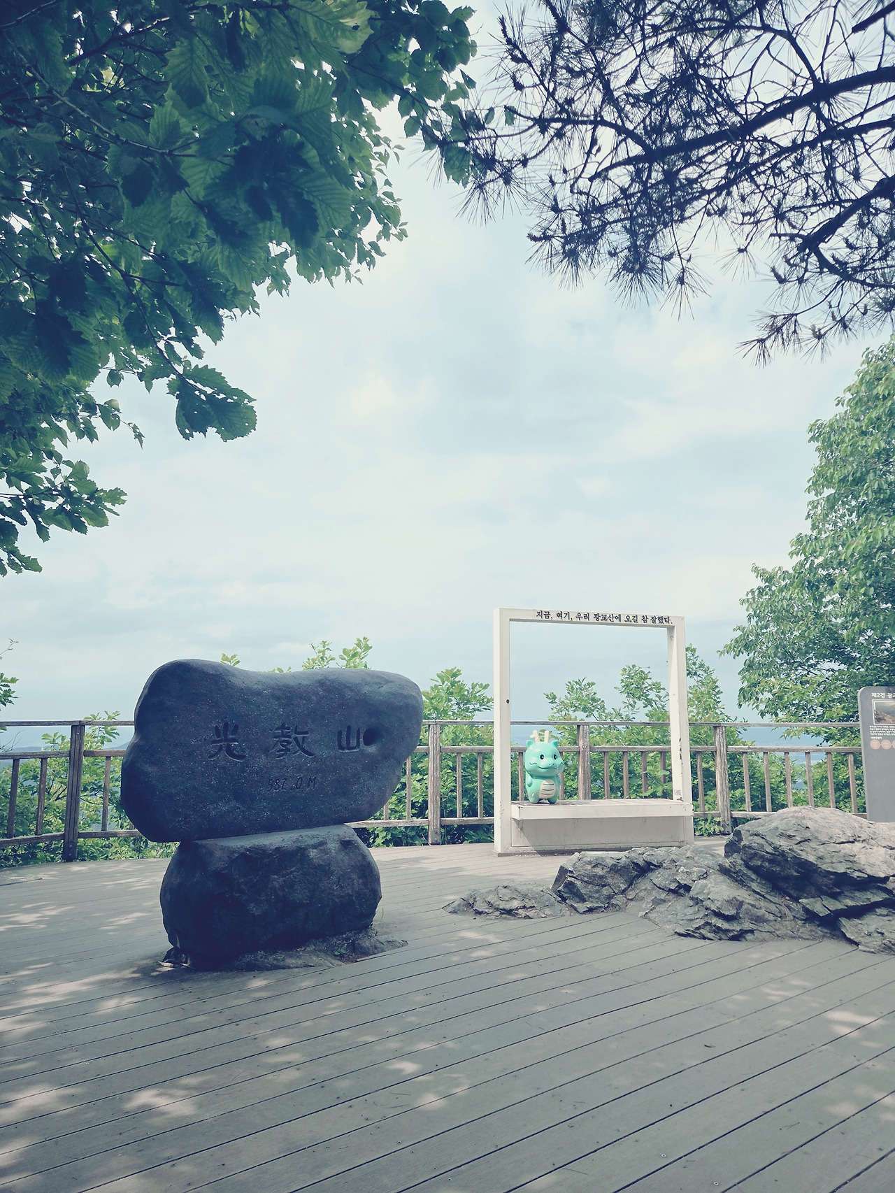 산을 잘 타는 분이 우리가 간 코스로 정상까지 딱 1시간 40분 걸렸다고 했다. 우리는 초짜이니까 두 시간을 예상했고, 정말 귀신같이 두 시간 만에 시루봉 정상에 올랐다. 정상이 해발 몇 미터 정도 될까? 1000은 안 되겠지? 800은 될까? 이런 대화를 하며 올라갔다. 정상에 올라 표지석을 보고 헛웃음이 나왔다. 582m였다.