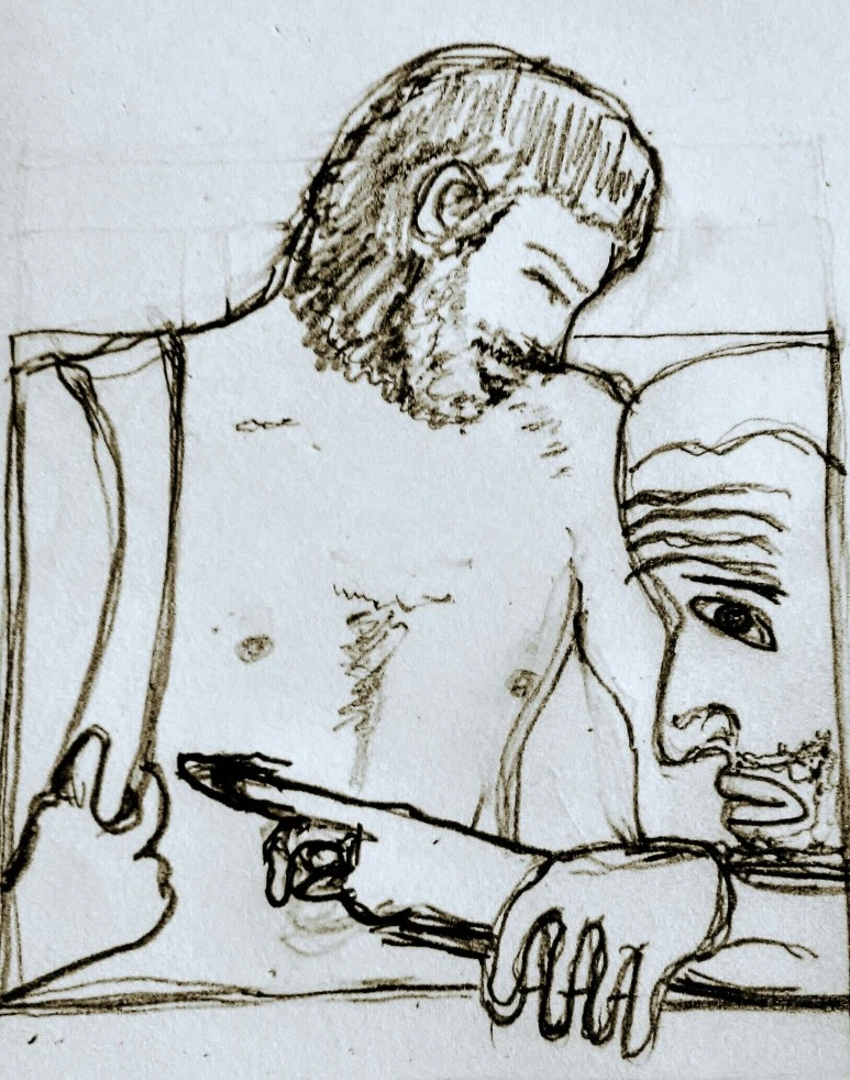카라바조의 의심하는 도마를 보고 류하해 스케치 연필