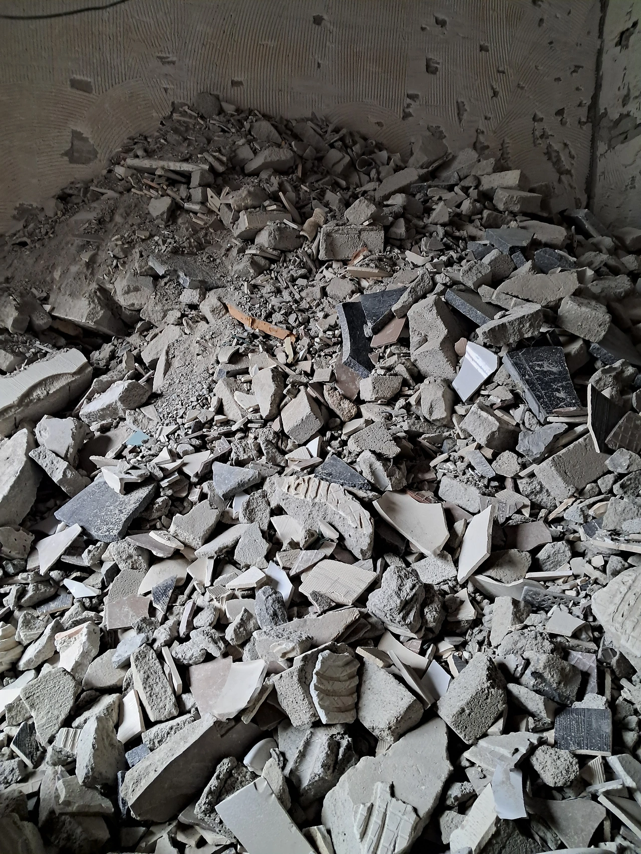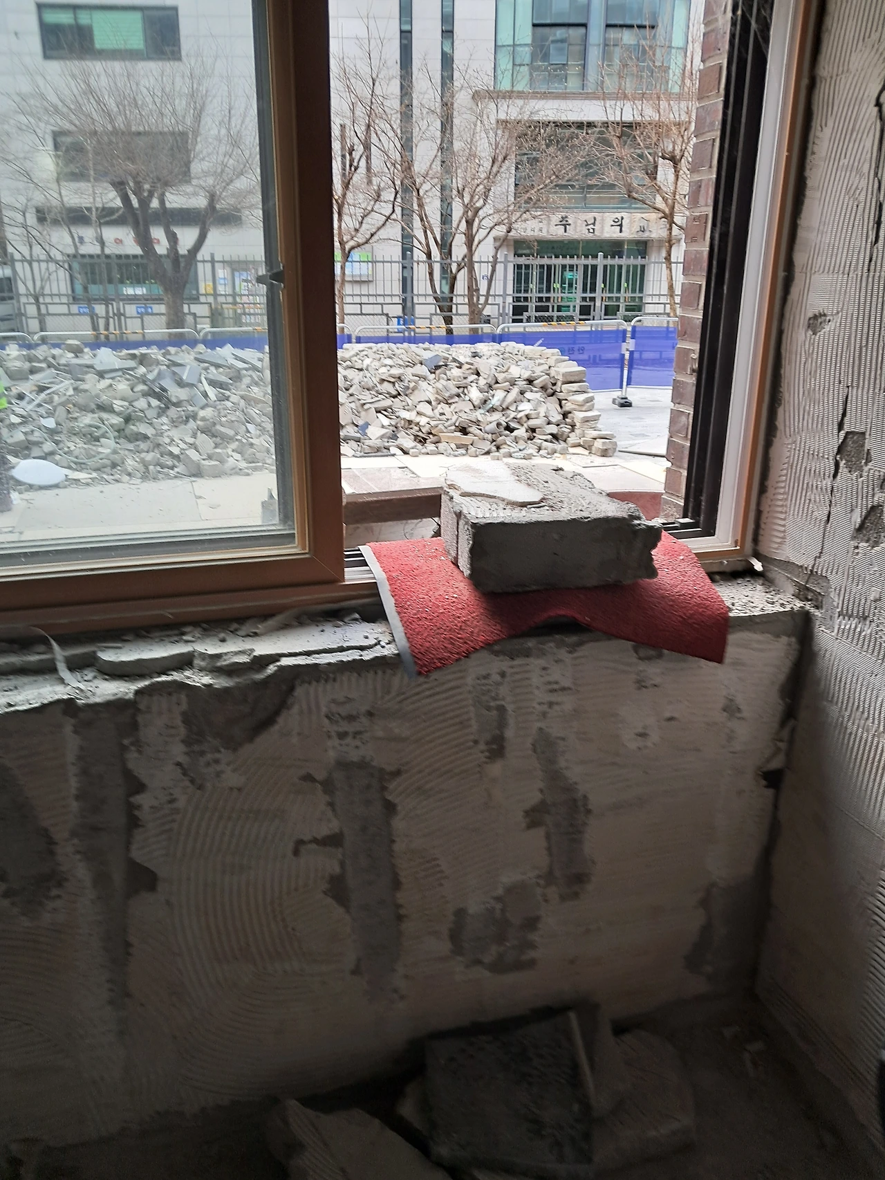 2층 3층 구멍을 뚫어 철거 잔해를 내린다