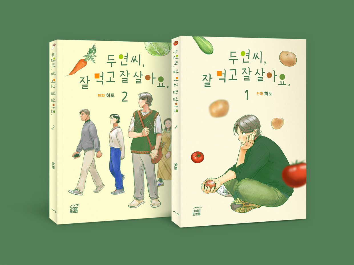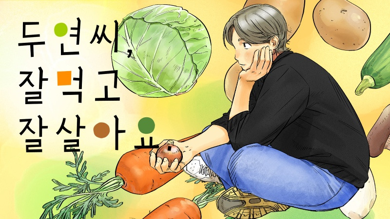 이러한 생각을 하던 나에게 작은 변화의 계기를 만들어 준 것이 바로 채식 요리 웹툰 『두연씨, 잘 먹고 잘 살아요.』(이하 『두잘잘』)이다. 만화가 하토가 그리고 쓴 『두잘잘』은 출판사에서 편집자로 일하는 서른 살 ‘마두연’이 채식을 시작하며 겪는 이야기다. 대중과 다른 방식의 식생활로 인해 가족, 친구, 직장 동료와 빚는 마찰이나 사회생활에서 쉽지 않은 비건 식사에 얽힌 에피소드를 통해 주인공 ‘두연씨’의 삶을 현실감 있게 그리고 있다. 독립 연재 플랫폼 딜리헙(dillyhub)에서 2020년 시작해 지금은 시즌 2를 연재 중이다. 시즌 1은 지난해 12월 크라우드펀딩을 통해 단행본으로도 출간이 되었다.