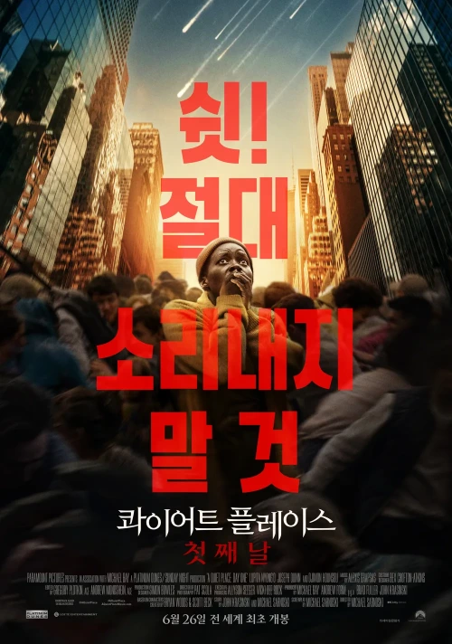 이번에 '첫째 날'이라는 제목이 붙어 프리퀄 버전이 세상에 나왔다. 소리에 민감한 그 괴물들이 언제 지구에 나타났고 어떻게 인간 사회를 괴멸했는지 보여주겠다는 심산으로, 시리즈 전체 이야기의 맨 처음이 영화로 개봉된 것이다. 전작 두 편을 봤다면 아니, 한 편이라도 봤다면 이 프리퀄을 기대 안 할 수가 없다. 왜냐하면 소리 하나에 발광하는 그 괴물의 정체가 무지무지하게 궁금하기 때문이다. 도대체 저것들은 어디에서 온 거야? 어떻게 인류 전체의 병력과 싸워서 이길 수 있었던 거야? 그래서 '첫째 날'이라는 부제를 단 이번 작품이 엄청 기대를 받았던 것이다.