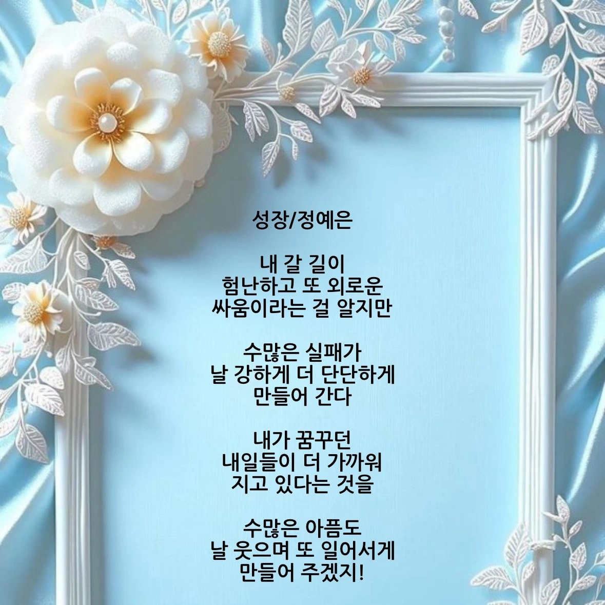 내 꿈 글 꽃 피우리 출간/이제는 행복져야 할 시간입니다 저자/세상에 아름다움을 꽃처럼 피어내어 향기를 날리고자 하는것이 저에게 꿈이며 희망입니다