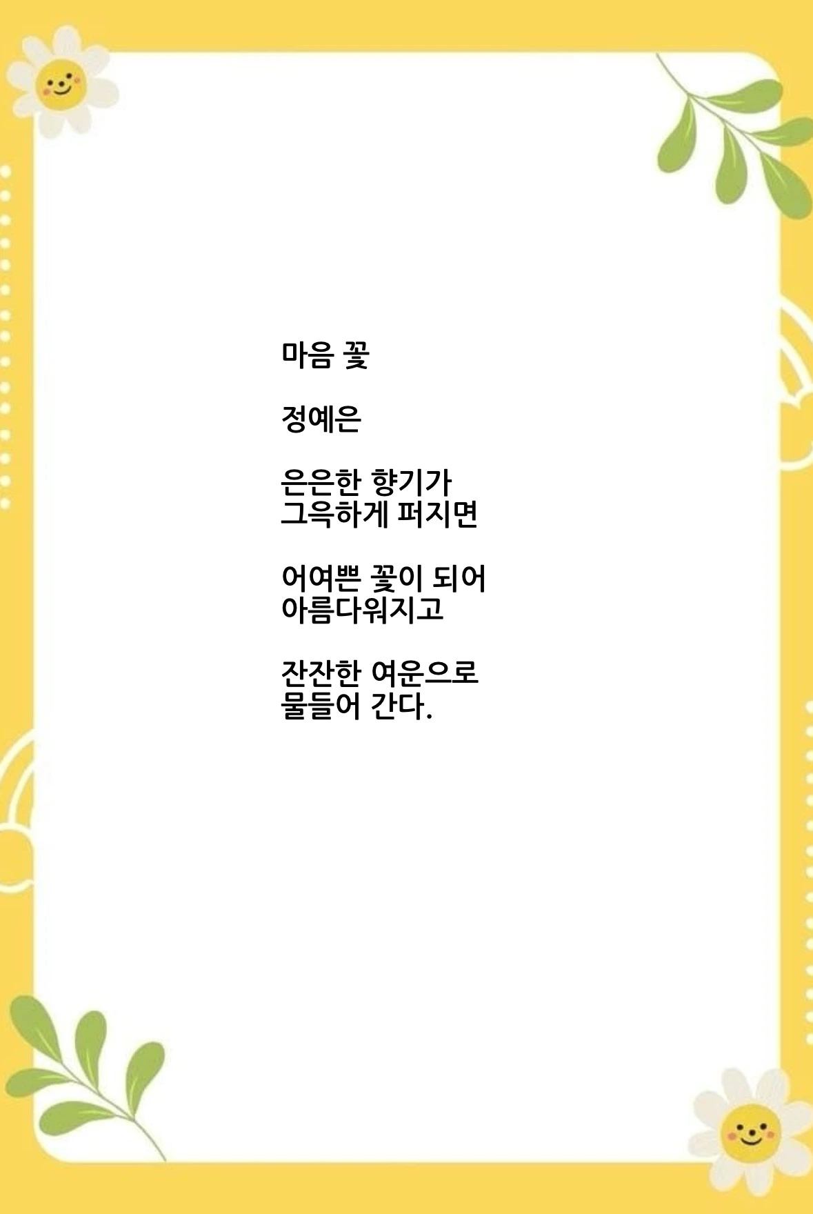 내 꿈 글 꽃 피우리 출간/이제는 행복져야 할 시간입니다 저자/세상에 아름다움을 꽃처럼 피어내어 향기를 날리고자 하는것이 저에게 꿈이며 희망입니다