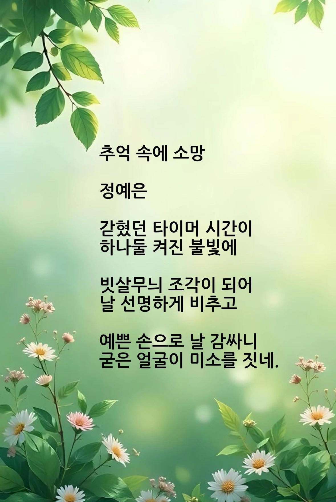 내 꿈 글 꽃 피우리 출간/이제는 행복져야 할 시간입니다 저자/세상에 아름다움을 꽃처럼 피어내어 향기를 날리고자 하는것이 저에게 꿈이며 희망입니다