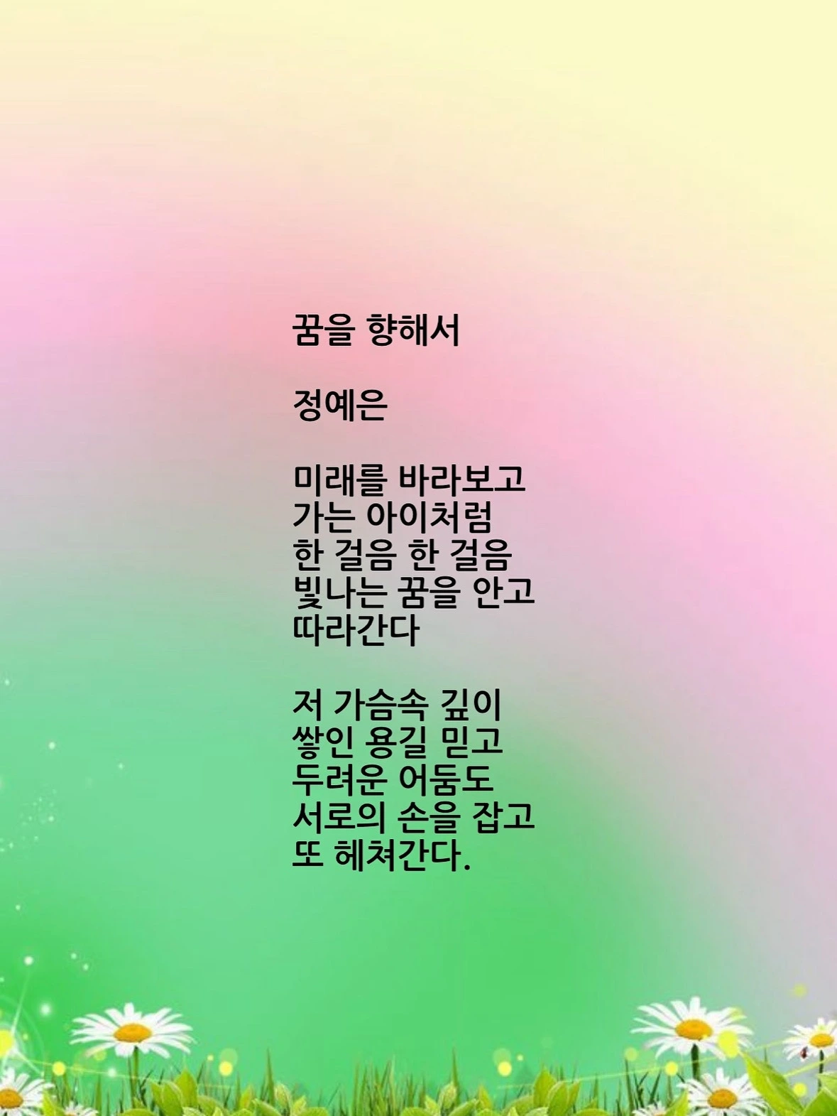 내 꿈 글 꽃 피우리 출간/이제는 행복져야 할 시간입니다 저자/세상에 아름다움을 꽃처럼 피어내어 향기를 날리고자 하는것이 저에게 꿈이며 희망입니다