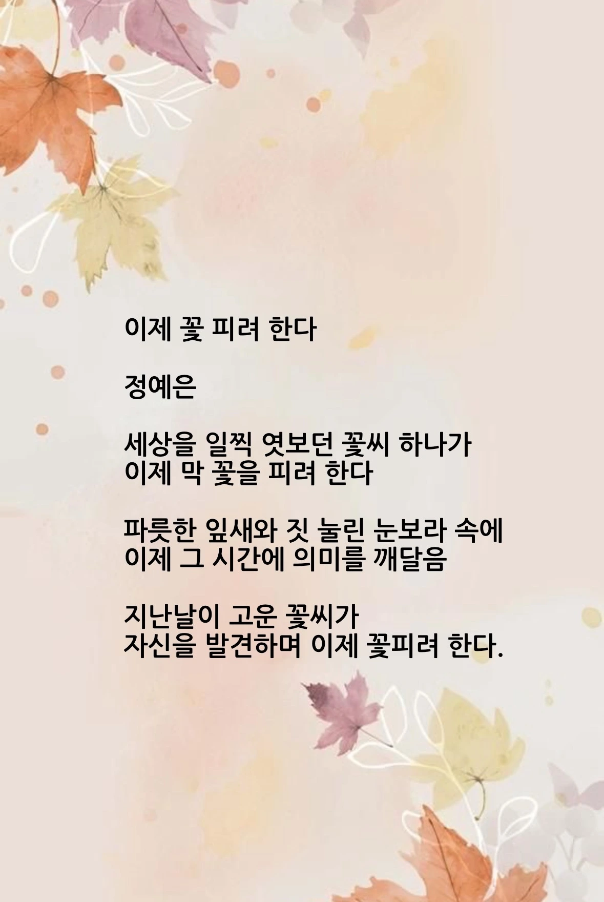 이제 꽃 피려 한다