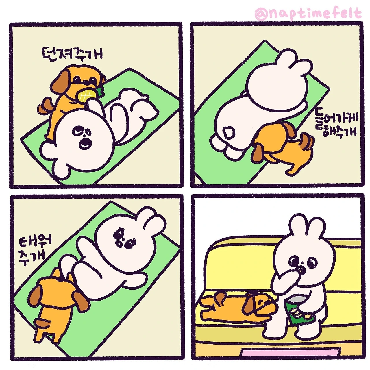언제나 재미있는 일을 추구하는 저는 현재 유튜브 채널 '낮잠시간펠트'에서 스톱모션 애니메이션을, 인스타그램에서는 '밍기적 토끼' 일상 힐링 카툰을 연재하고 있습니다.