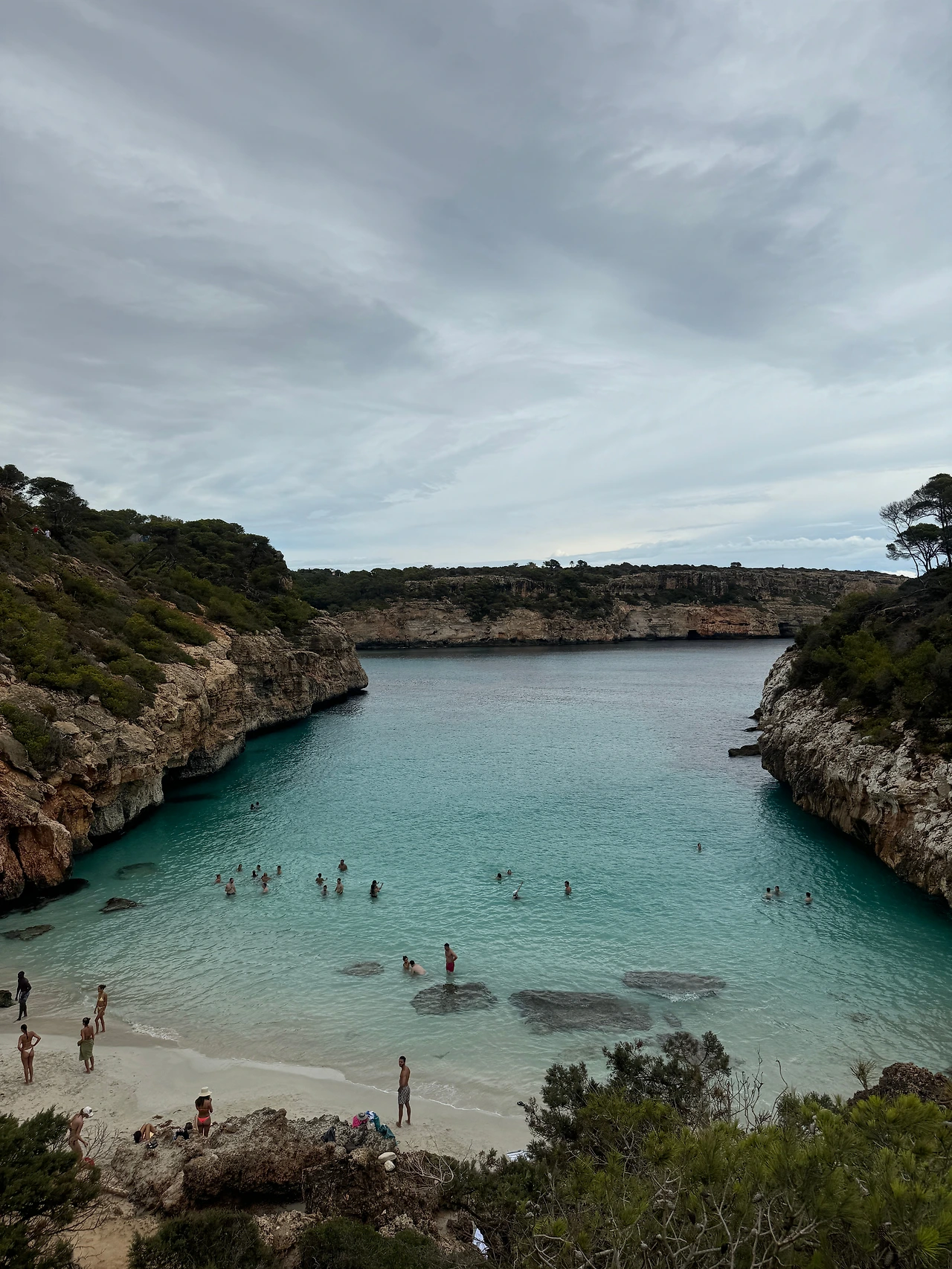 첫 번째 목적지 칼로데스모로. 한국인에게 가장 유명한 마요르카 해변일 것이다. 사실 물이 별로 맑지 않다고 해서 안 가고 싶었지만, 한편으론 남들 다 가는 곳 안갔다오면 후회할 것 같았다. 이 날도 비가 추적추적 내렸는데, 마요르카 날씨를 간파한 우리는 금방 비가 그칠 것이라며 주차장에서 비가 멈추길 기다렸다. 1시간 가까이 기다렸을까. 예상대로 비는 잦아들었고, 날씨가 흐렸지만 덕분에 덜 붐비는 칼로데스모로를 즐길 수 있었다. 주관적인 생각이지만, 칼로데스모로 보다 예쁘고 깨끗하고 멋진 해변은 마요르카에 많은 것 같아서 굳이 방문하지 않아도 될 것 같다. 여기서 시간을 너무 지체한 탓에 소예르와 발데모사 투어는 일찍이 마음을 접었다.