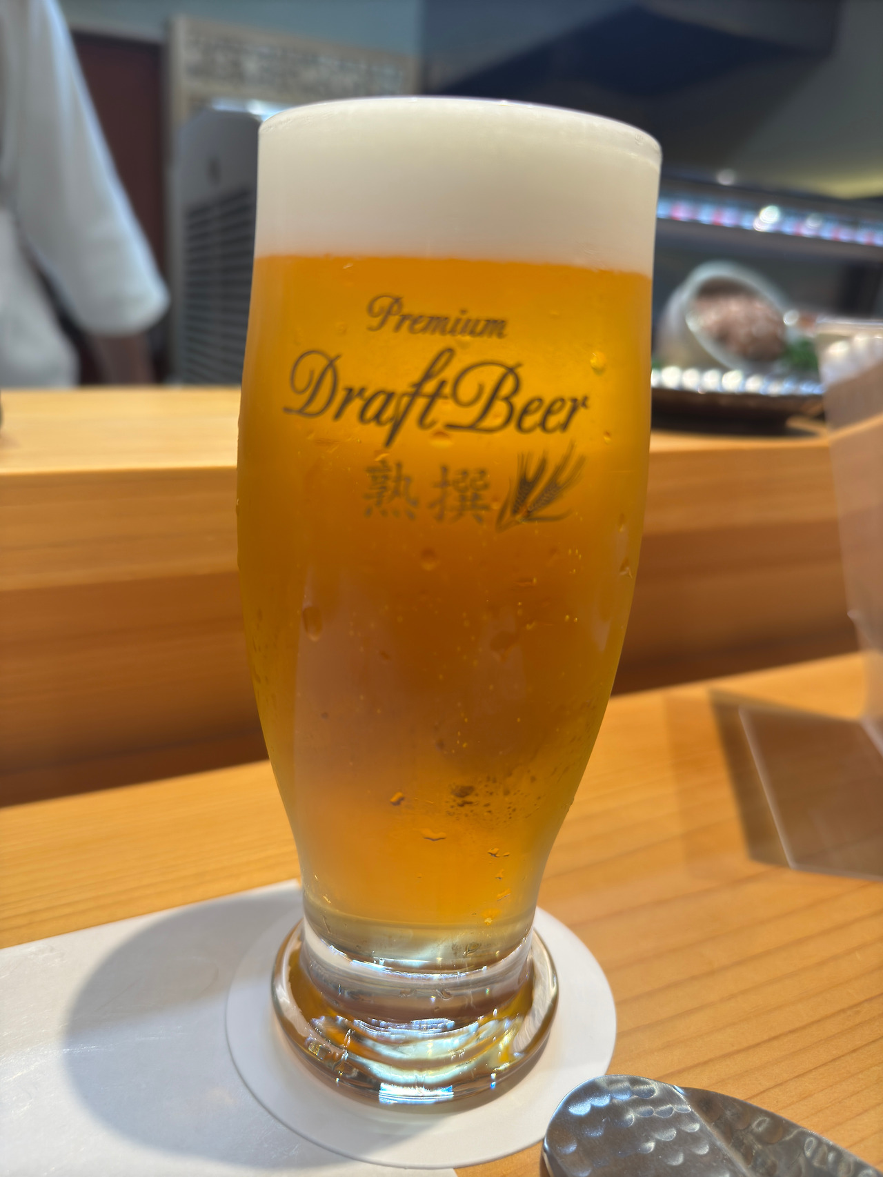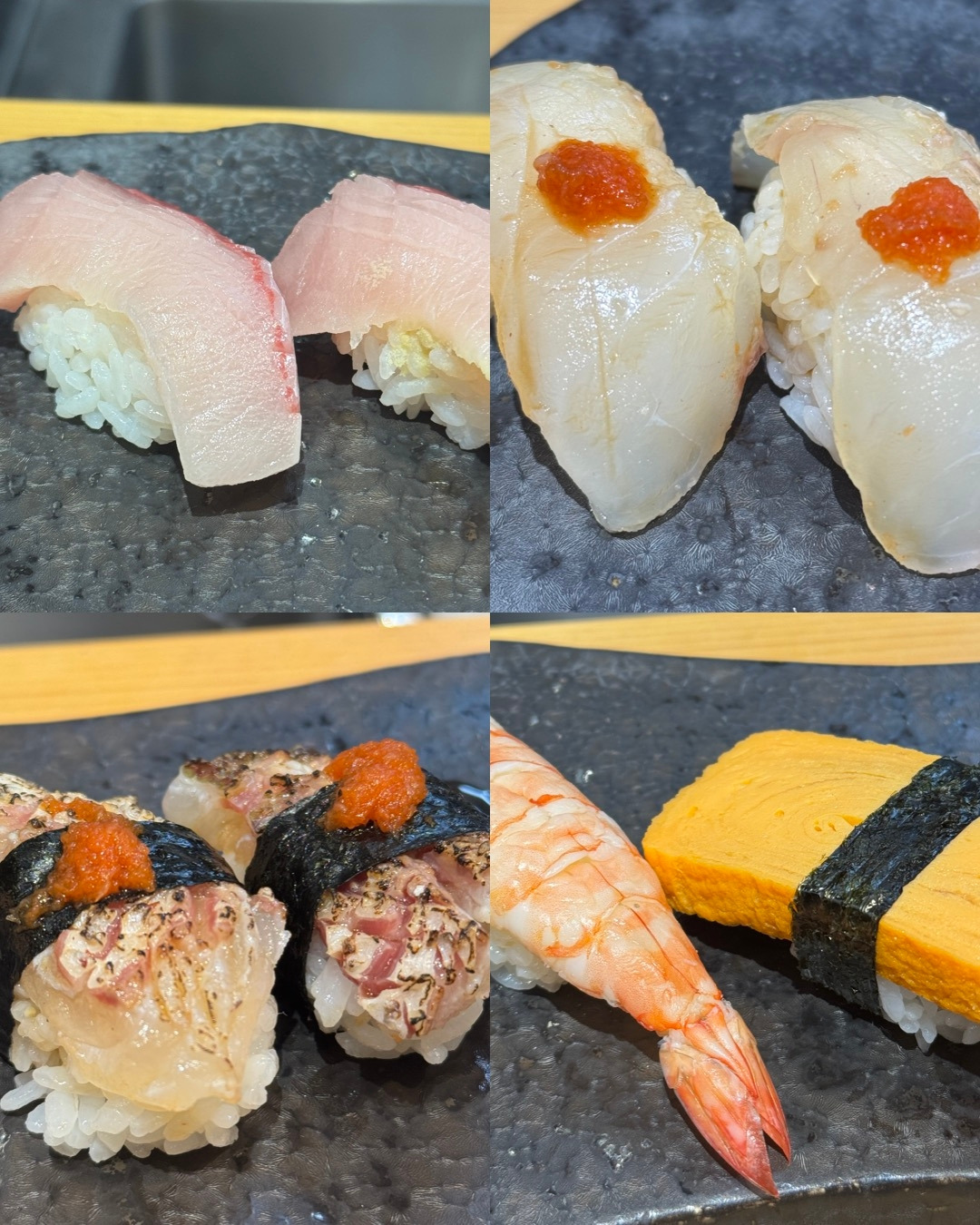 두 시간 정도 자고 일어나니 개운해졌다. 저녁과 야식은 숙소 근처(신세카이)에서 해결하기로 했다. 잔잔요코초(먹거리 시장) 내에 가성비 좋고 붐비는 스시집도 많았지만, 이틀 연속 인파로 북적이는 곳에만 있었더니 조용하고 고상하게 스시를 즐기고 싶었다. 다른 초밥은 잘 기억이 안나지만 도미 초밥이 정말 맛있어서 3번이나 주문했다. 역시나 남편은 하이볼, 나는 맥주를 마셨고, 서로 "크으.. 이게 행복이지!"라고 말하며 동그랗게 웃었다.