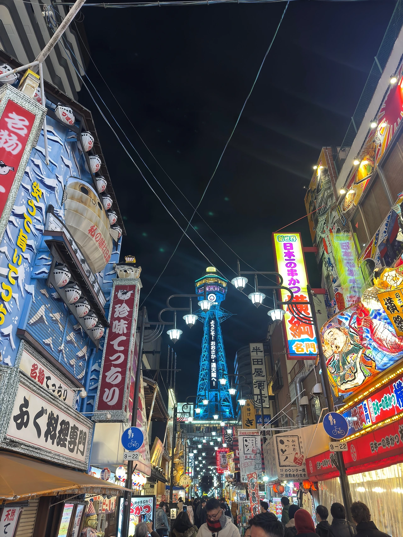 이번 여행은 2박 3일이지만 실상 1박 2일에 가까운 일정으로, 여행보단 데이트 같았다. 둘이 나란히 배낭을 메고 가벼운 마음으로 비행기에 올랐다. 공항에서 지하철을 타고 이동하는 동안 해는 완전히 떨어졌고, 우리가 처음 마주한 것은 토요일 저녁 번쩍번쩍한 신세카이 거리이다. 대부분의 식당은 손님들로 북적였고, 화려한 간판과 조명들은 눈을 바쁘게 만들었다. 남편은 시선이 가는 식당마다 이곳에 머무는 동안 한 번 들러보자고 제안했고, 나는 "그래!" 밝게 대답만 하곤 나의 계획엔 껴주지 않았다.