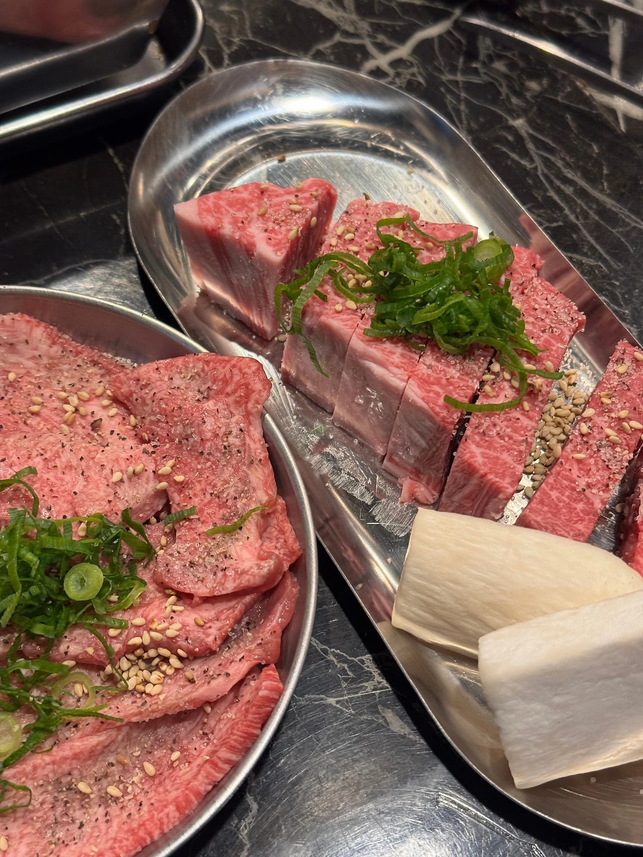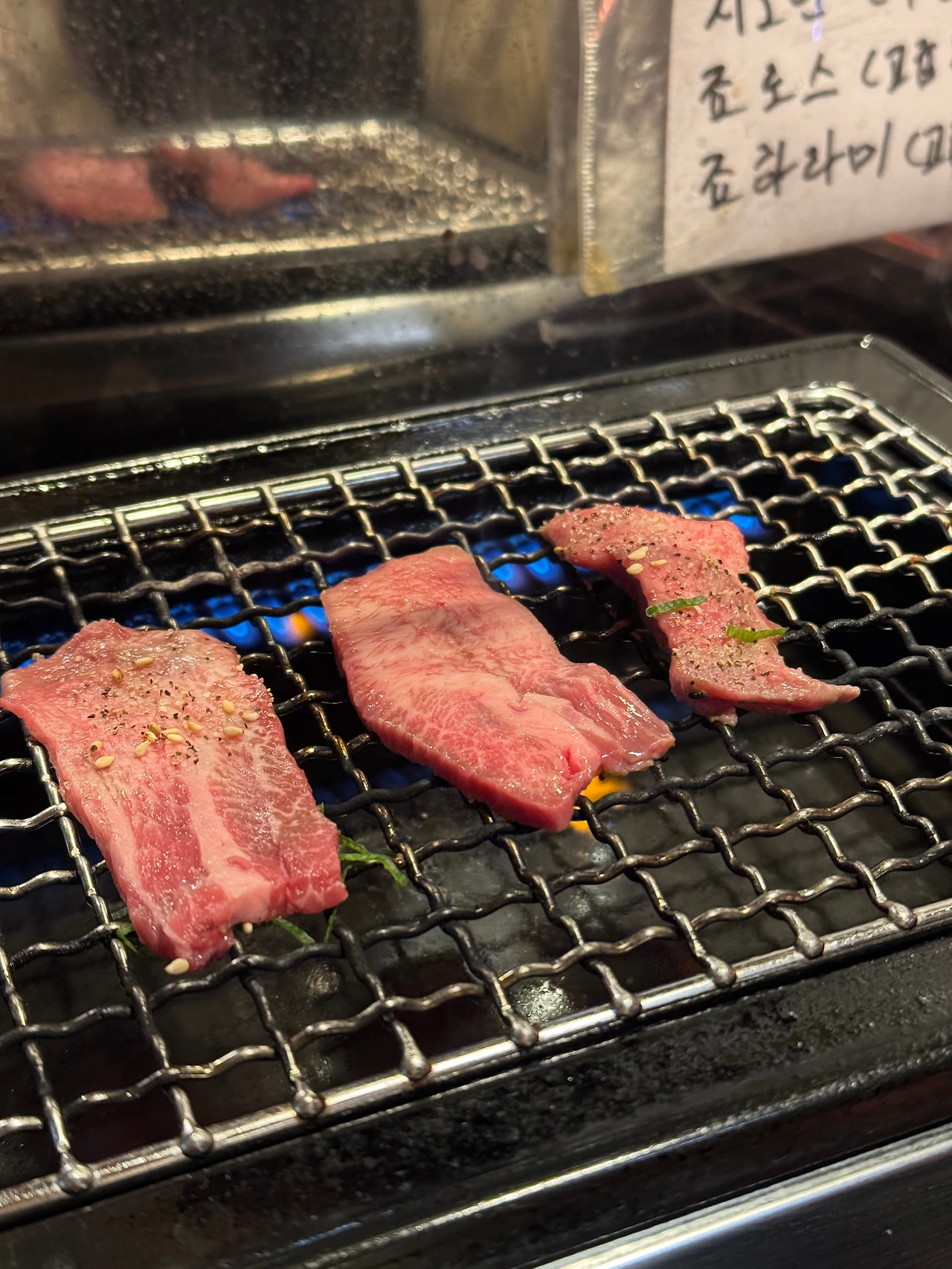 열심히 걸어 도착한 '야끼니꾸 히후미', 유명 맛집은 예약이 필수다. 이 곳은 가운데 작은 주방과 주방을 둘러싼 6개의 좌석이 전부다. 고급 우설, 안심, 닭목살과 함께 남편은 하이볼 나는 생맥주를 주문했다. 비싼만큼 고기 품질은 모두 좋았고 남편은 안심을, 나는 우설을 최애로 꼽았다. 분명 붙임성 없는 남편인데, 하이볼과 보리소주에 취해 용기가 샘솟았는지, 뜬금없이 사장님께 일본 하이볼이 너무 맛있다며 제조법을 물었다. 하이볼 극찬에 기분이 좋으셨는지 사장님께서는 흔쾌히 본인의 제조법을 알려주셨다. 숙소로 돌아오는 내내 우리의 대화 주제는 하이볼이었고, 남편은 내일 하이볼 3잔을 마시겠다며 결연히 다짐했다. 내 눈엔 아직 콩깍지가 단단히 씌워져 있는지 36살 아저씨의 하찮은 다짐이 그저 귀여웠다.