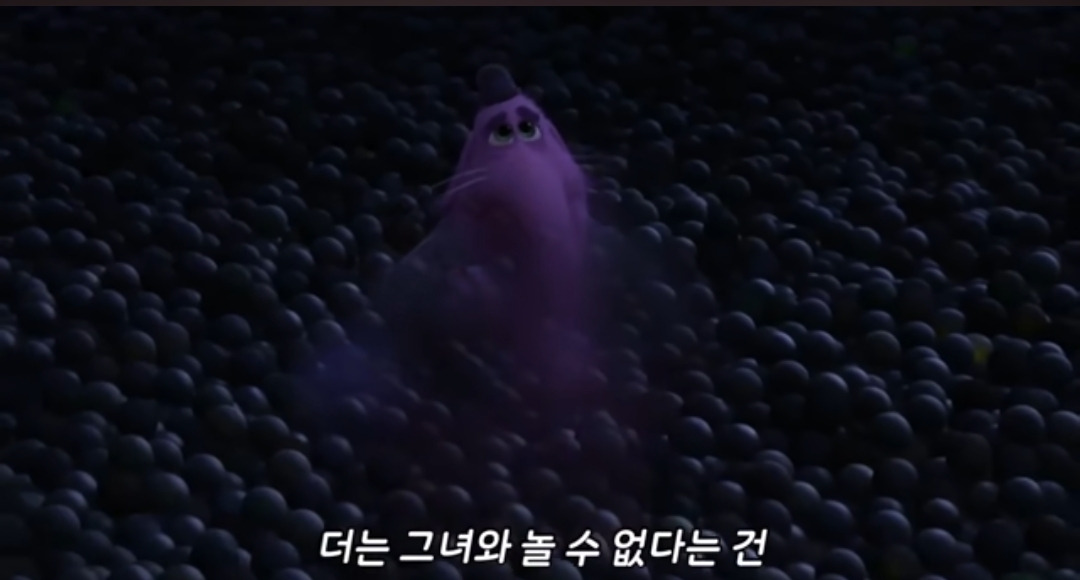 어렸을적 라일리와의 추억들로 라일리를 채워주면 그만일뿐 그 아이의 옆에 계속 있을 필요는 없다는것도 로켓에서 뛰어내릴때 나의 여행은 여기까지인것 같다는 빙봉의 표정은 어딘가에 잠들어있을 나만의 빙봉이 생각났다.
