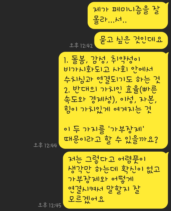 페미니즘 공부를 한 사람에게 도움을 요청했다.