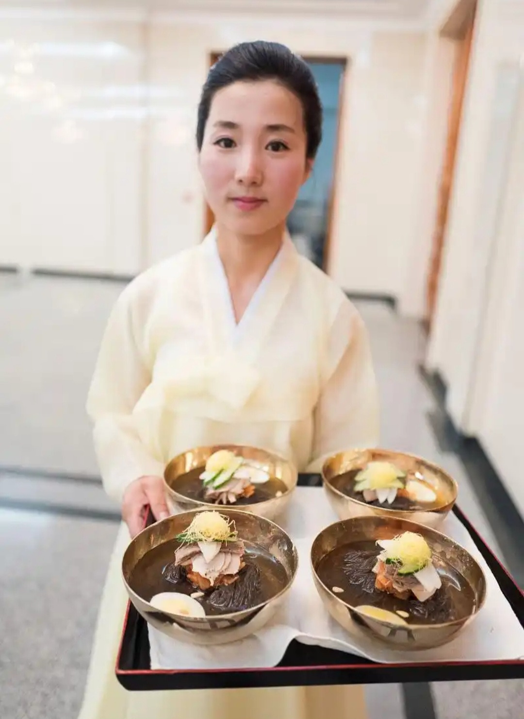 우리 일행은 본관 특실로 안내되어 들어가니 벌써 식사 준비를 세팅해 놓았다. 녹두전 두 장과 돼지 수육 몇 점을 작은 접시에 각각 담아 개인별로 세팅을 해 놓았고, 평양의 봉황맥주나, 평양소주, 천연사이다 등을 서브해 주었다. 냉면은 100그램, 200그램 단위로 놋대접에 제공되었다. 맛은 우리가 즐겨 먹던 물냉면과는 조금 다르게 면발이 질기지 않고 부드러우면서 인공 조미료가 첨가되지 않아서 담백했다. 냉면만 있는 게 아니고 숭어회나 숭어탕도 있었다. 사실 이곳은 북한 주민이 누구나 무시로 이용할 수 있는 곳은 아닌 것 같았다. 제법 고급스럽고, 서비스 수준이 아주 높았다. 들은 이야기로는 평양냉면과 쌍벽을 이루는 함흥냉면은 함흥시에 있는 신흥관에서 판매를 한다고 한다. 그리고 평양의 젊은 층들은 옥류관의 전통적인 무미하고 담백한 냉면보다 청류관의 냉면을 더 좋아한다고 한다.