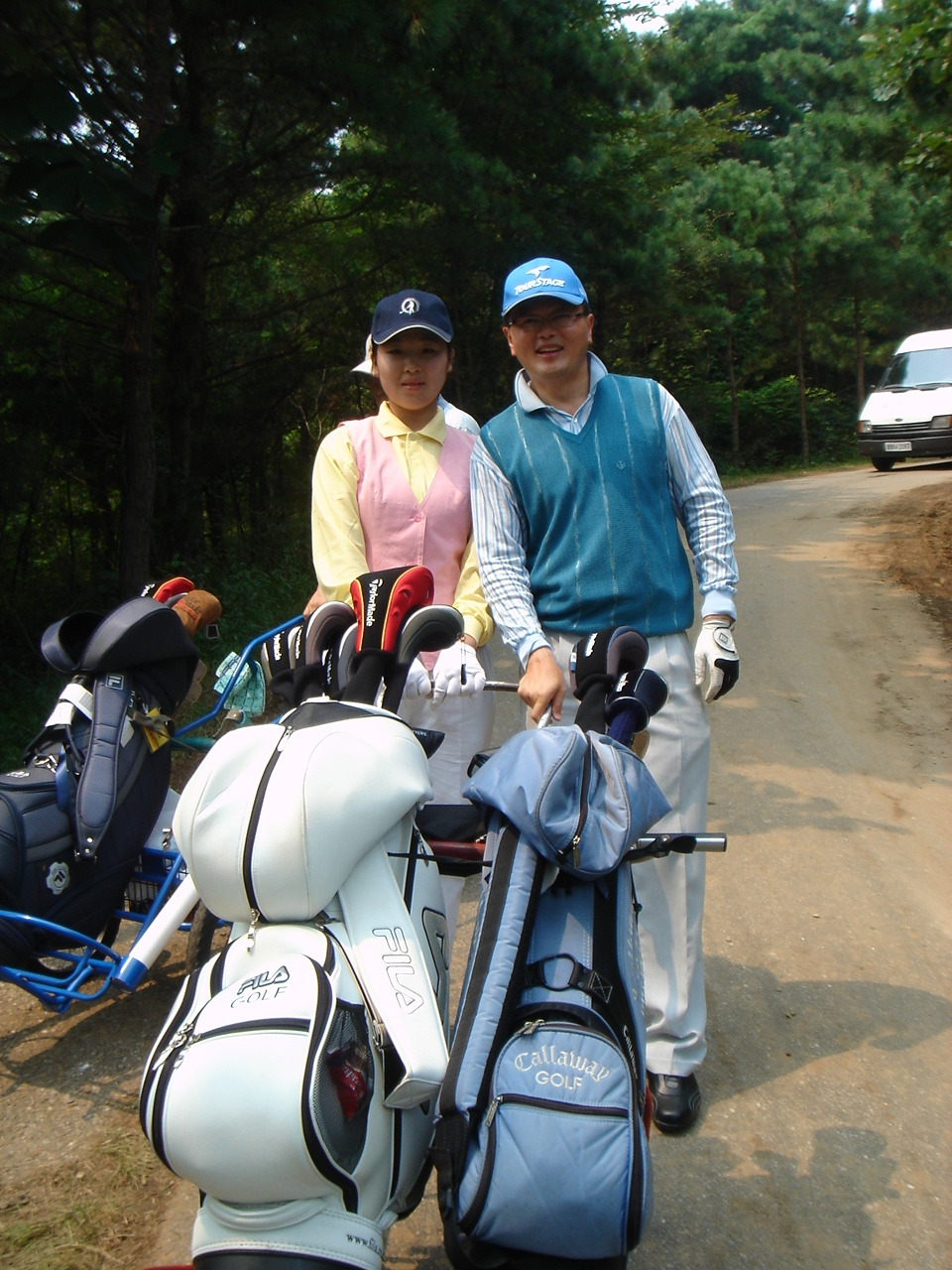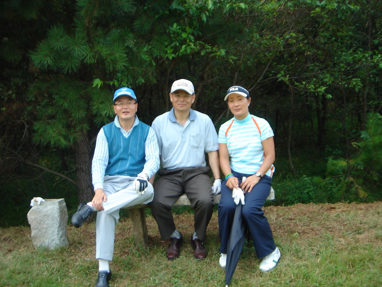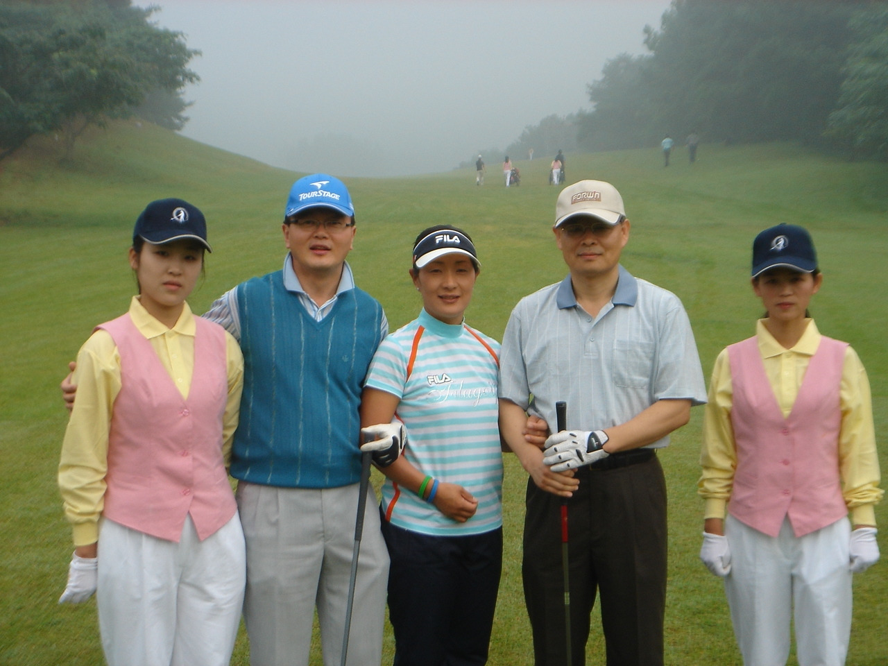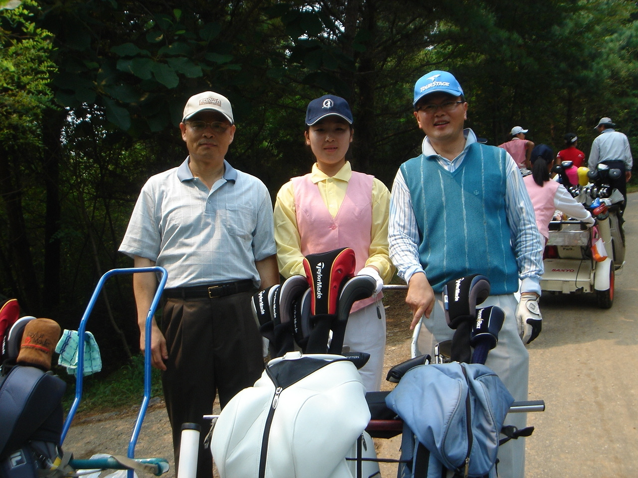 <같이 라운딩한 김순희 프로와 선문대 교수, 그리고 북한 캐디 학생>