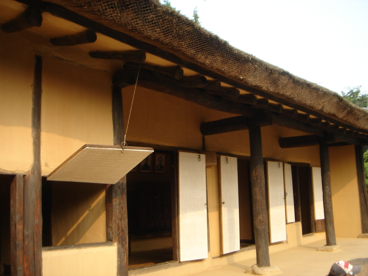정말 볼 것 도 없다. 당시 얼마나 가난하게 살았는지를 보여 주는 정도이다. 초가집 본채와 헛간채 등이 있다. 본채에는 흙벽으로 된 방에 오래된 장롱이 비치되어 있고, 김일성의 부모(김형직, 강반석) 사진이 벽에 걸려 있다. 부엌에는 가마솥이 걸려 있고, 베틀과 농기구도 전시되어 있다. 그야말로 우리네 옛날 시골집 모습이다. 노무현 전 대통령 생가랑 비슷하다고 보면 된다. 그것보다는 조금 큰 편이다. 짚으로 이엉을 이은 헛간 지붕에는 박 덩굴이 잘 자라고 있고, 그 앞으로 커다란 항아리가 놓여있었다. 그네들에겐 귀중하고 최고의 존엄일지 몰라도 우리 남한 사람들에게 별 감흥도 볼거리도 없이 더운데 고생만 시킨다고 투덜거리는 사람도 많았다.