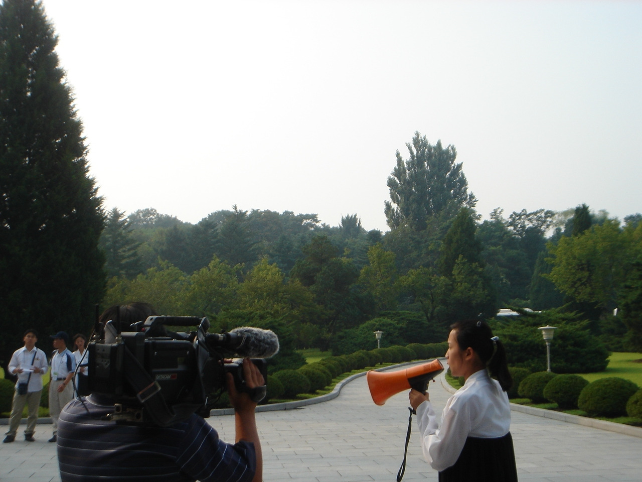 열성 당원인지 몰라도 검정치마에 흰 저고리를 입은 여성 안내원을 핸드 마이크를 들고 끊임없이 수령 동지를 찬양하고 있었다. 모두들 건성으로 듣고 사진만 찍고 나온다. 다른 곳의 안내원은 약간 화려한 한복을 입었는데 이곳 안내원만 유독 제사 지낼 때 입는 복장이라서 조금 특이하게 보였다. 아마도 최고의 존엄의 고향집에 대한 엄숙함 때문에 복장 규칙도 다른가 보다. 주변에는 김일성이 어린 시절부터 몸을 단련하며 애국심을 다졌던 씨름장, 맑은 샘, 학습장, 군함암, 활암, 수곡류 등 혁명 유물이 보존돼 있다. 옛집에서 약 100m 떨어진 곳에 1970년 4월 15일 개관한 만경대혁명사적관이 있다.