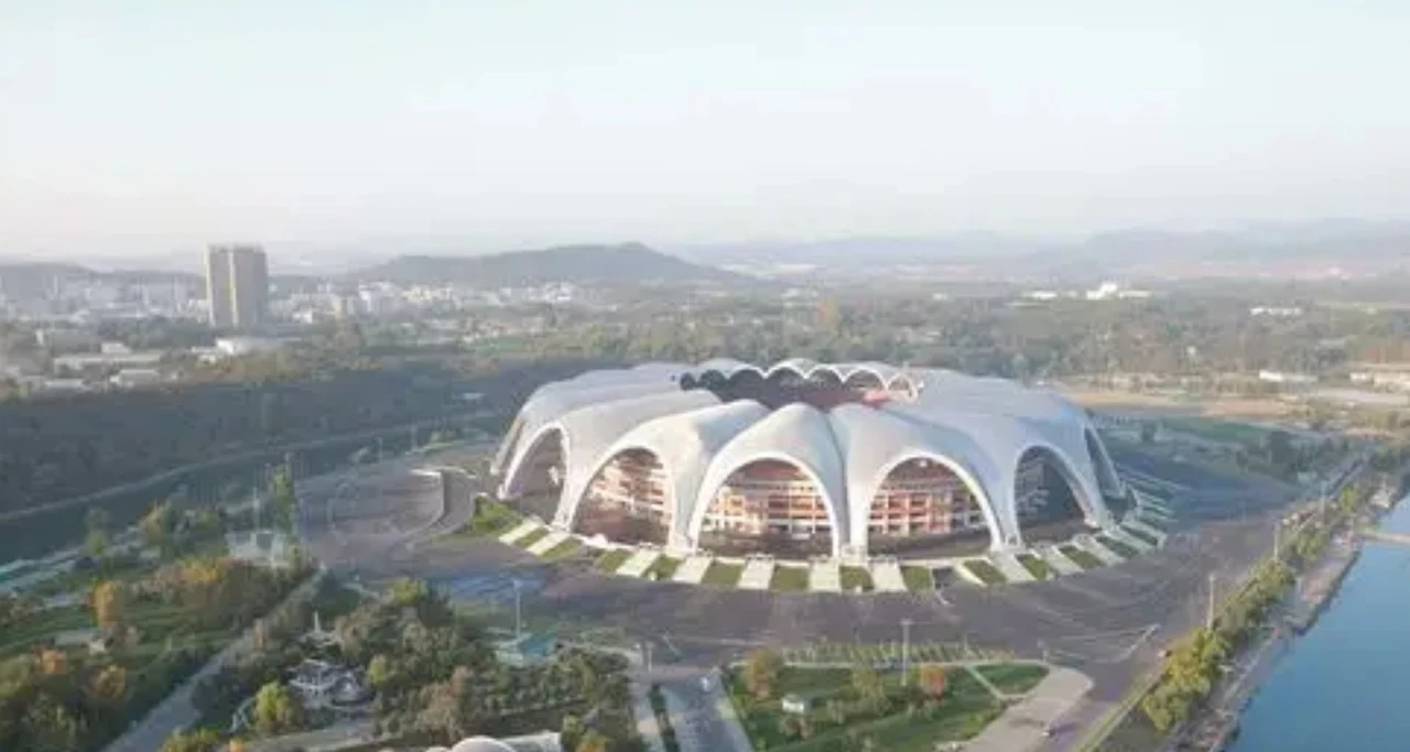 <연꽃 또는 UFO 모습의 능라도 경기장>