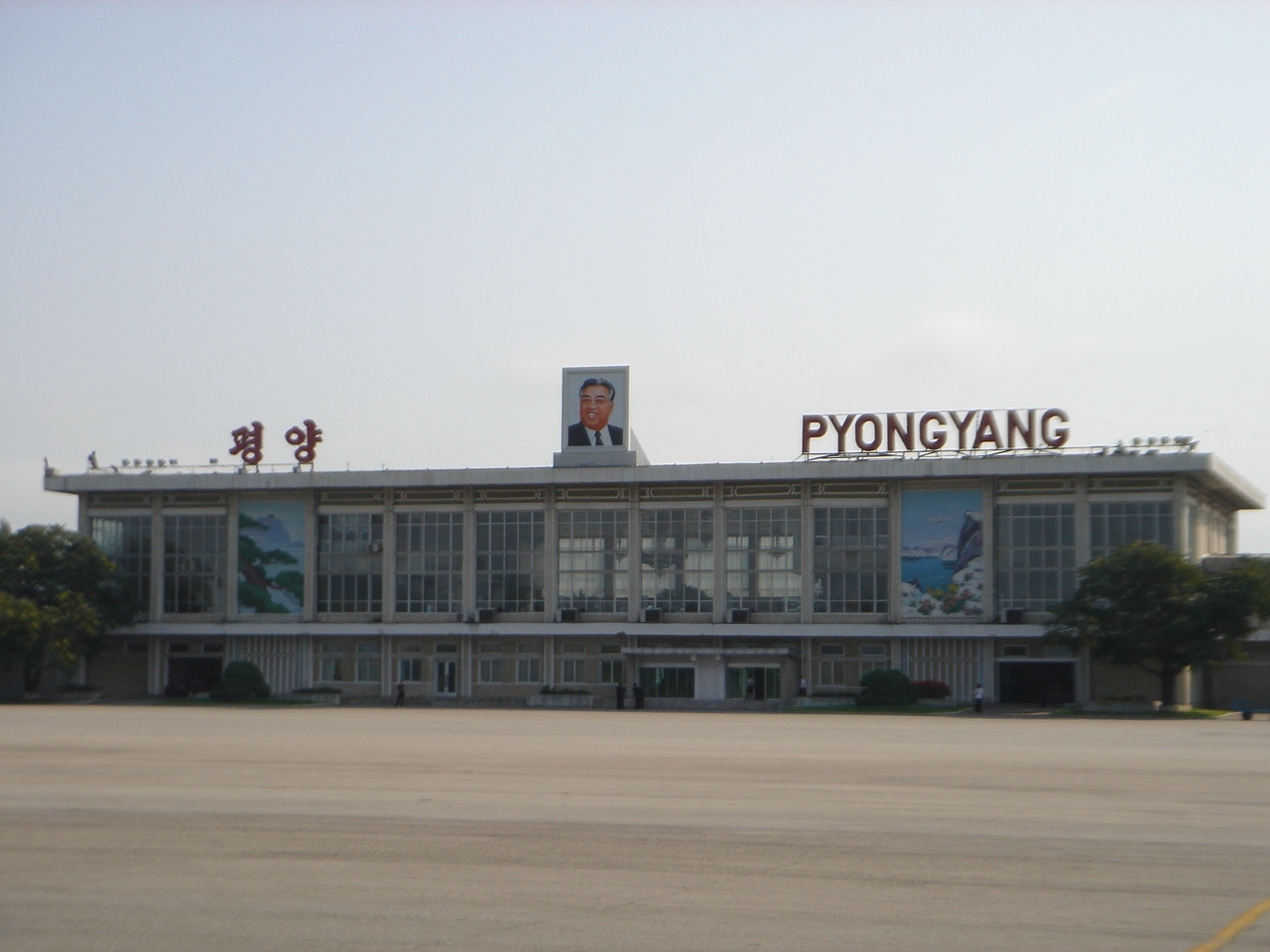 <평양공항은 텅 비어 있고, 청사위에 김일성의 사진만 웃고 있다.>