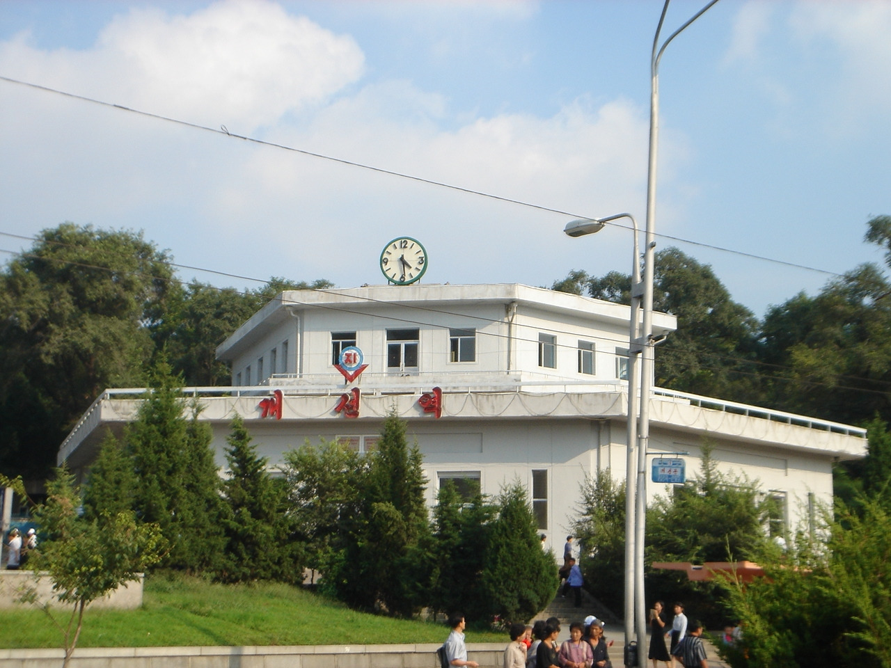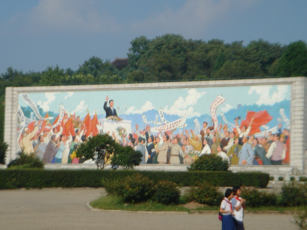 <왼쪽으로 김정일 선전 붉은 문구가 보인다>