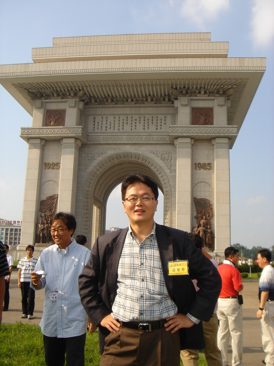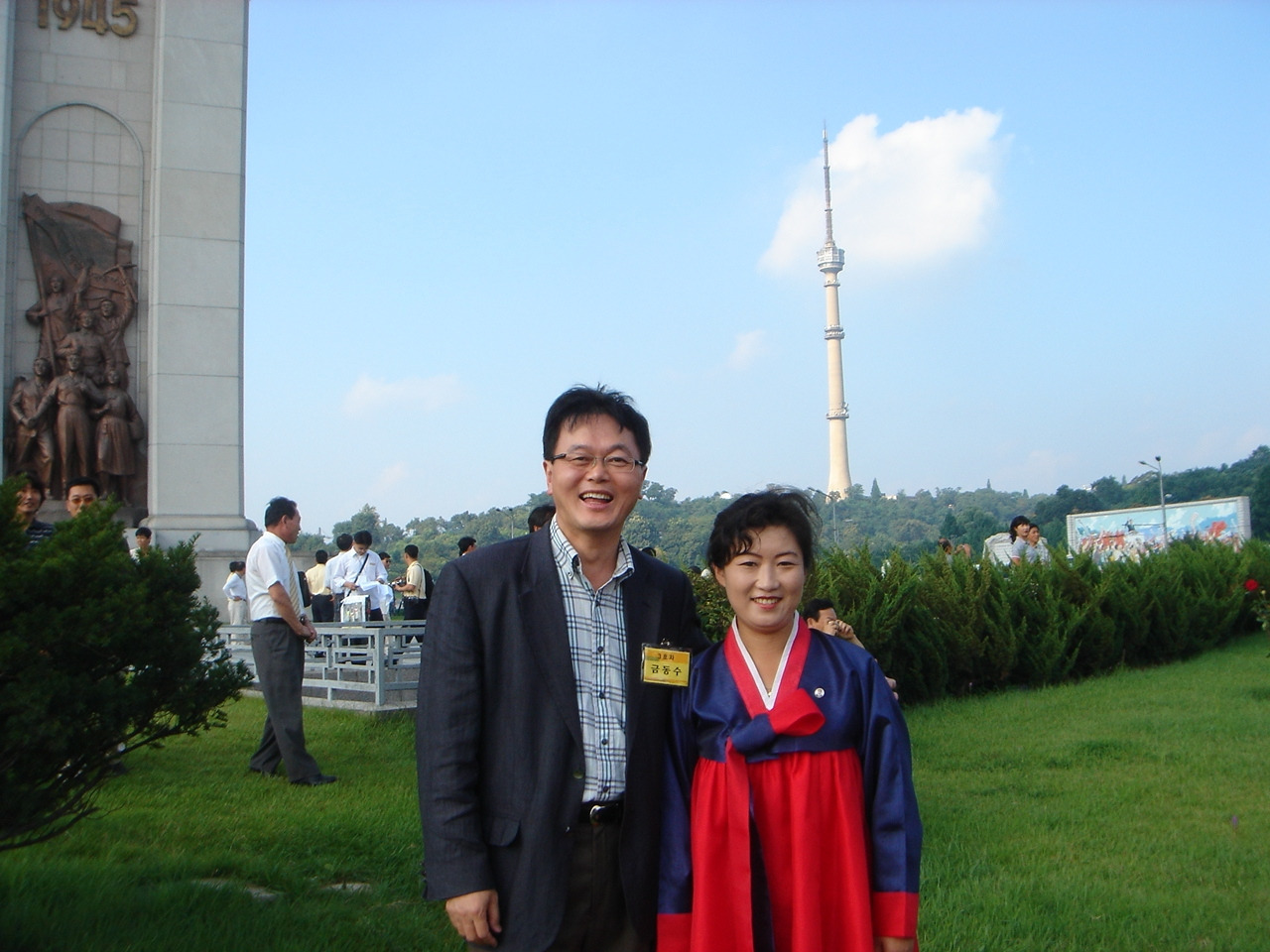 개선문 광장 한편에는 다른 지역에서 동원된 학생들이 열심히 8·15 기념행사를 위한 연습을 하고 있고, 그들이 타고 온 관광버스가 주차되어 있었다. 그 뒤쪽으로 평양 방송의 방송탑이 우뚝 솟아 있었다. 금삿갓은 빨강 치마에 남색 저고리를 차려입은 북한의 안내원과 함께 사진을 찍어 보았다. 개선문 건너편에 지하철 개선문역의 낡은 역사가 있었고, 거리에는 전차가 천천히 지나가기도 했다.