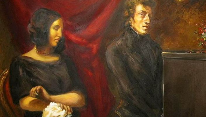 다채롭기보다 어지러울 정도인 상드의 연애 전선은 쇼팽을 만나고 나서는 잠잠하게 가라앉는다. 둘은 9년간 같이 지냈다. 쇼팽의 어떤 매력이 폭풍우 같은 그녀의 변덕스러운 마음을 잠재우고, 그 긴 시간 동안 동행할 수 있게 했을까? 쇼팽과 상드를 이어준 사람은 음악가 프란츠 리스트(Franz Liszt)와 그의 애인 마리 다구(Marie d’Agoult) 백작 부인이었다. 원래 상드가 뮈세와 사귈 때 리스트는 뮈세의 여동생의 피아노 가정교사였다. 상드도 리스트를 좋아했지만 리스트는 파리에서 가장 미인이고 사교계의 여왕인 마리 다구에 마음을 두고 있어서 이루어질 수 없었다. 마리 다구가 남편인 백작과 불화로 별거하면서 딸을 잃고 실의에 빠지자, 리스트가 상드의 소설을 그녀에게 보내서 마음을 돌려서 서로 사랑하게 된 것이다. 마리는 유부녀의 몸으로 리스트와 스위스 제네바로 가서 둘 사이에 아이를 셋이나 낳았다. 평소 책을 많이 읽던 리스트가 상드의 소설을 즐겼고, 이를 애인 마리에게 소개해 주어서, 셋을 죽이 맞아서 같이 잘 지냈다. 마리는 상드에게 감화되어 소설가로 등단하여 여러 작품을 낸다. 마리의 살롱에 온 쇼팽은 리스트의 소개로 상드와 만나게 된 것이다. 이런 두 커플이 당시 파리의 사교계의 가장 핫한 소문을 이끌고 다녔다. 상드를 처음 소개받던 날 피아노의 시인 쇼팽은 밥맛 뚝 이었다고 한다. 그도 그럴 것이 당시의 숙녀는 약간의 자극만으로도 호들갑을 떨며, 남 앞에서는 입맛 없는 체해야 했으며, 약함이 미덕으로 인정받았던 호박씨 왕내숭의 황금기였기 때문이다. 그런데 상드는 남자 복장에 굽을 덧댄 구두를 신고 담배를 피우면서 남성적으로 행동을 했으니. 더구나 쇼팽의 마음속에는 이미 마리아 보진스카(Maria Wodzinska)라는 폴란드 유학 시절부터 알고 지내던 상드보다 15살이 어린 소녀가 자리 잡고 있었기 때문이었다. 쇼팽은 그녀와 약혼까지 갔다가 파혼당한 아픔이 커서 처음에는 상드가 눈에 차지 않았다. 우유부단하고 소심한 쇼팽에게 6살 연상의 상드는 묘한 매력이 넘치고, 사람들의 리드하는 에너지가 있었다. 그래도 쇼팽은 망설이고 거부했다. 눈치 빠른 상드는 폴란드 출신 문학가들을 활용하여 쇼팽의 아픈 구석을 세밀하게 터치하면서 드디어 쇼팽의 가슴을 열 수 있었다.