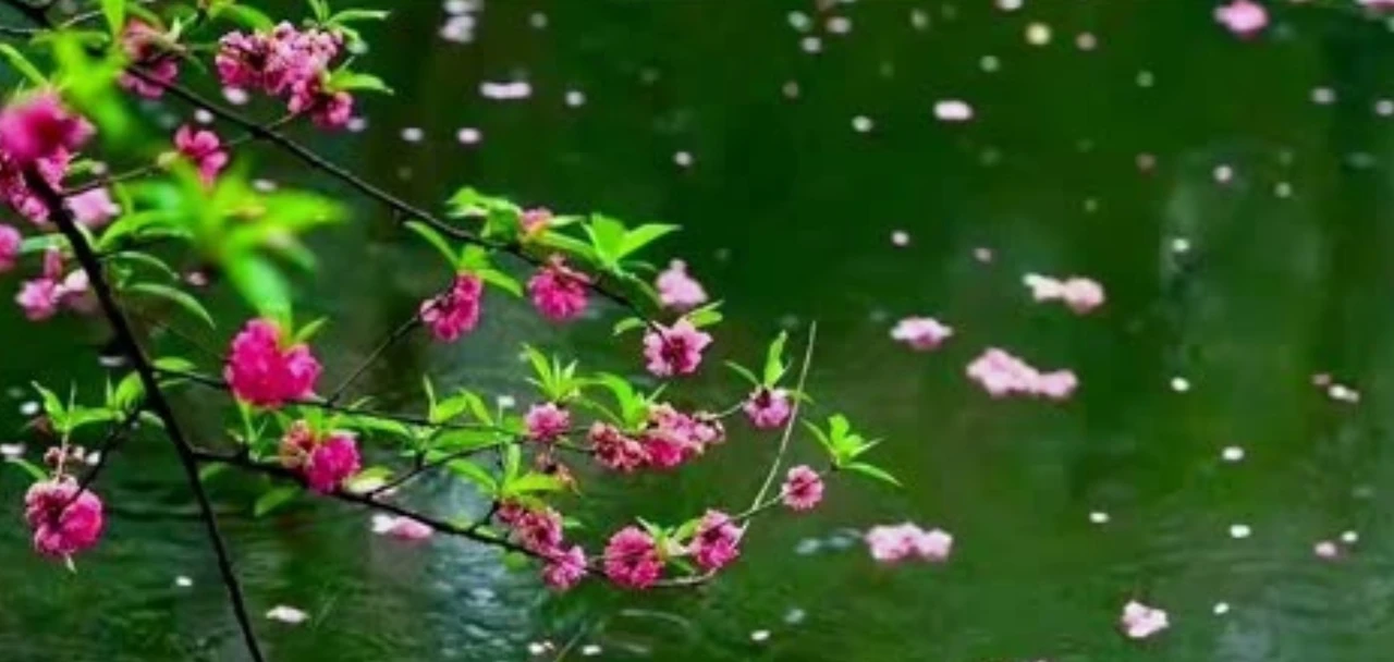 물에 뜬 남은 꽃잎은 거울 속의 봄이네.