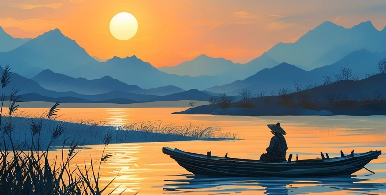 달은 하늘가에 홀로 가는 배를 전송하네.