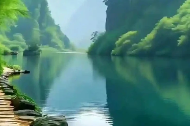 햇살이 긴 강물에 비치니 만 이랑이 황금빛이로다.