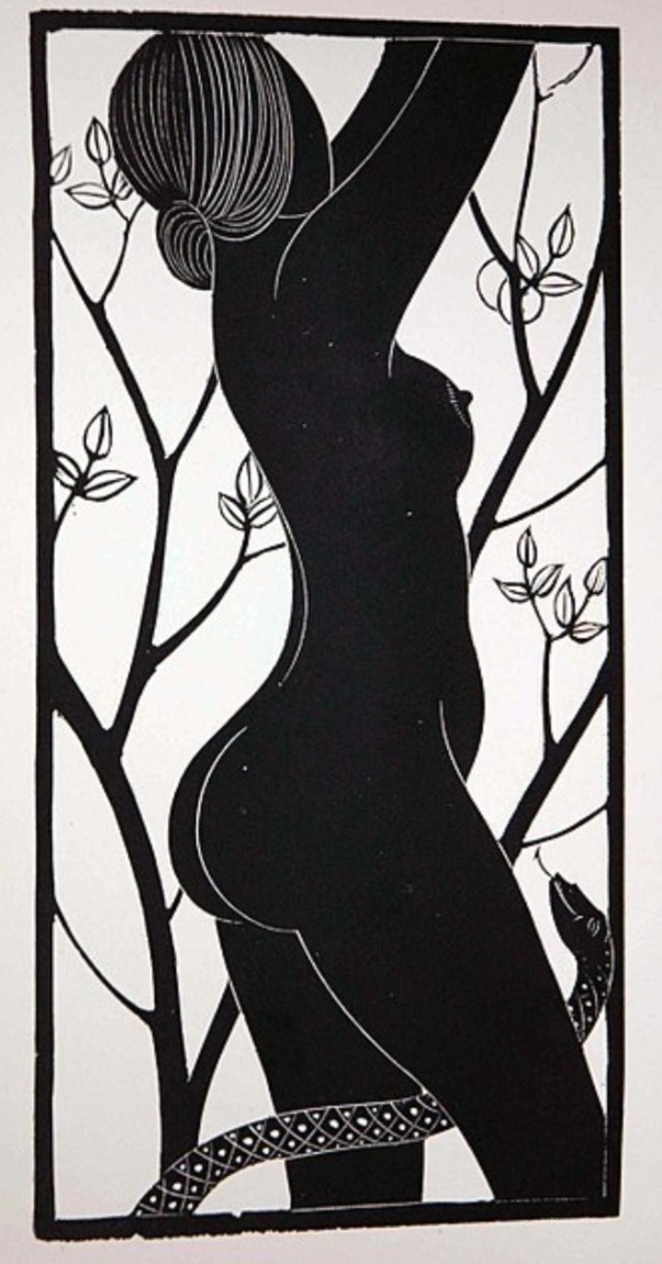 위의 그림이 에릭 길이 자기의 딸 페트라를 모델로 삼아 그린 <목욕하는 소녀 II>이다. 그는 둘째 딸 엘리자베스를 모델로 누드를 그리기도 했다. 여성의 신체를 둘러싼 문화적 규범에 도전하는 데보라 드 로베르티스의 행위예술이 세상과 예술을 보는 시선을 바꾸어 주었을까? 그녀의 파격적인 접근 방식은 전통적인 예술 관습에 도전하지만, 관람객에게 도리어 불편함과 관음증적 성향을 드러내 보이는 건 아닌지 모르겠다. 어쨌든 그녀의 대담함과 끈기를 통해 예술에서 여성의 신체가 어떻게 다루어지는 지에 대한 논의에서 그녀 자신의 입지를 굳건히 하는 데는 성공한 것으로 보인다. 성인잡지 <허슬러> 등을 발행하는 래리 플린트(Larry Claxton Flynt)는 음란죄 등으로 수차 기소되고, 성조기 팬티로 국가모독죄 등 여러 차례 소송을 당하기도 했다. 플린트는 최종적으로 무죄 또는 승소 판결을 받았으며, 1996년에는 그의 법정 투쟁기가 영화 <래리 플린트>로 제작되었다. 그는 이렇게 항변했다. “살인은 불법이다. 그러나 살인을 찍은 사진을 뉴스위크에 실으면 퓰리처상을 받는다. 섹스는 합법이지만 그걸 사진으로 찍어 잡지에 실으면 감옥에 간다. 어떤 게 더 유해한가?” 필자 금삿갓이 우스개 소리로 예술과 외설의 판단 기준을 말해 보겠다. 작품을 눈이나 귀로 감상했을 때 감동이나 느낌이 안 오면 예술도 외설도 아니다. 감동이 머리에서 시작되어 가슴까지 오면 예술이고, 느낌이 머리에서 허리 아래까지 내려오면 외설이라고 보면 된다. 작품 자체의 평가도 간단하지 않지만 작가와 작품을 어떻게 객관화하느냐도 매우 어렵다. 아래의 작품은 에릭 길의 작품 <이브>이다. 뱀이 이브를 유혹하는 걸까 아니면 이브가 뱀을 유혹하는 것일까?