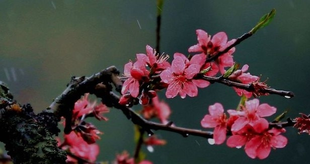 산속에 살면서 봄비 내리고 꽃이 피는 춘정(春情)에 취해 세월 가고 나이 먹는 걸 잊고픈 시심이다. 봄의 정취(情趣)를 잘 표현한 칠언절구(七言絶句)이다. 평기식(平起式)으로 압운(押韻)은 ◎표시한 濛(몽), 紅(홍), 風(풍) 자로 평성(平聲) 東(동) 운목(韻目)이다. 이사부동(二四不同), 이륙대(二六對)가 잘 지켜진 상태이고, 전구(轉句)의 3번 자와 결구(結句)의 1번, 3번 자의 평측(平仄)이 변용(變容)된 작법(作法)이다. 濛濛(몽몽)은 비·안개·연기(煙氣) 따위가 자욱한 모양(模樣)을 나타내며, 진화(陳澕)의 <송적팔경도(宋迪八景圖)-연사모종(烟寺暮鐘)>에 “行人一聽一廻首(행인일청일회수) / 길 가는 이 한 번 듣고 한 번 고개 돌리니, 杳靄濛濛片月斜(묘애몽몽편월사) / 아득한 이내 자욱한데 조각달 비껴 있네.”라는 좋은 구절이 있다. 중국 가수들의 노래에는 제목이나 가사에 많이 쓰인다. 중국노래 몽몽세우(濛濛细雨)나 몽몽세우억당년(濛濛细雨憶當年) 같은 것은 여러 가수들이 부른 애잔한 가요이다. 雙鬢(쌍빈)은 양 귀밑의 머리로 일명 구레나룻을 말한다. 簪(잠)은 여자들이 머리에 꽂는 비녀이다. 繁萼(번악)은 꽃다발 정도로 보면 되는데, 萼(악)은 꽃받침이다.