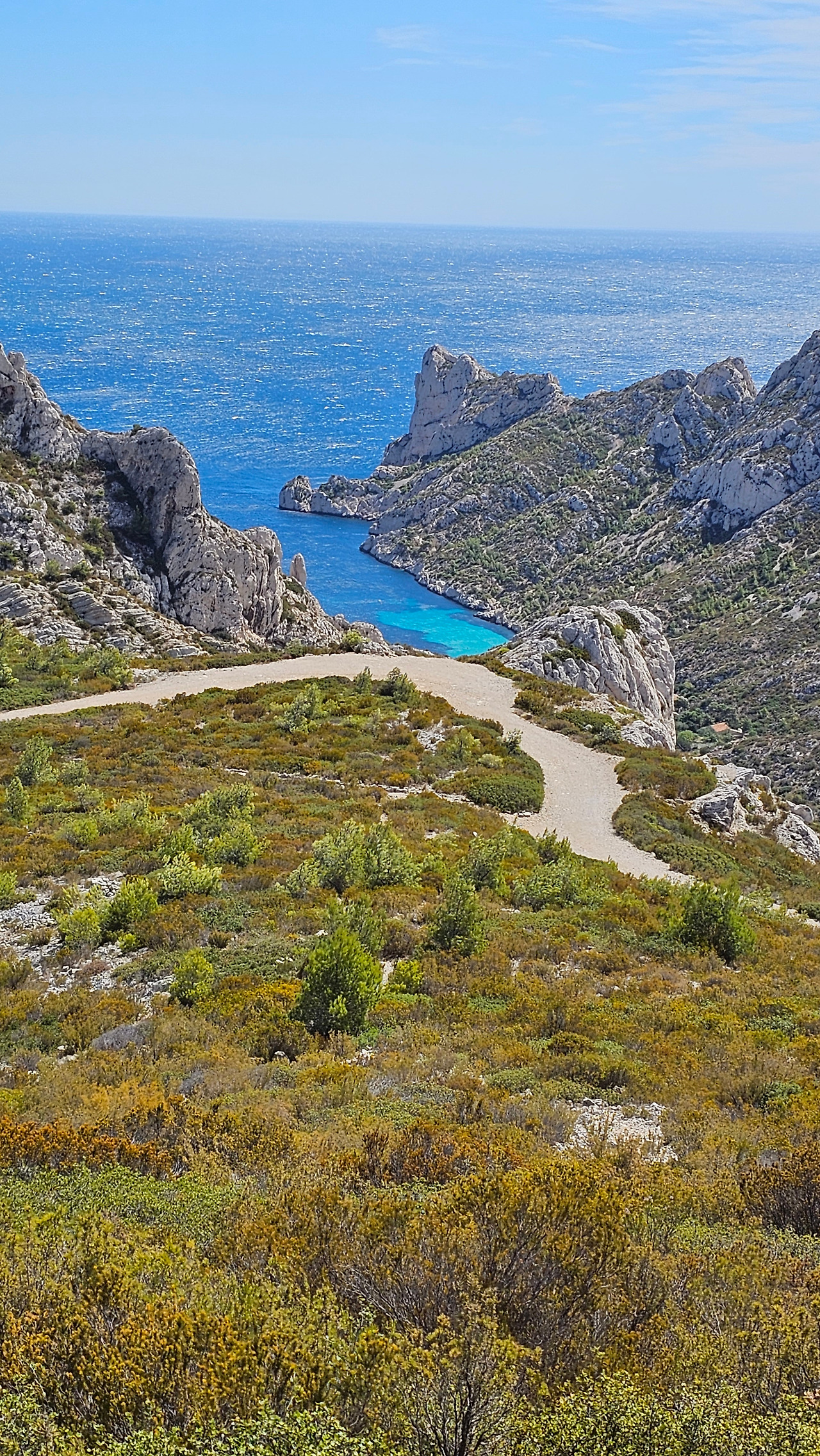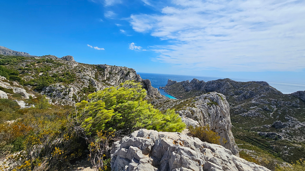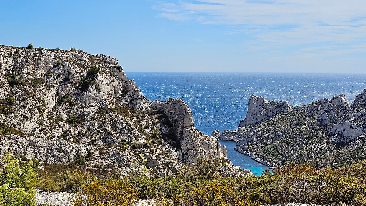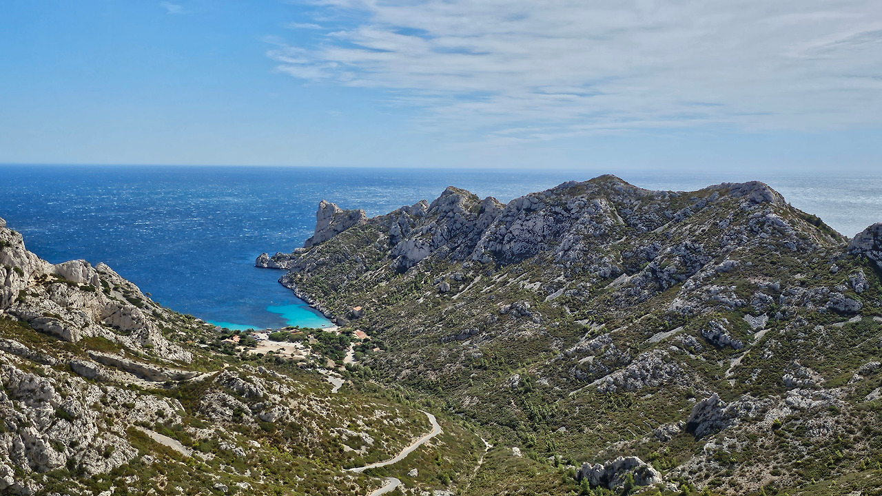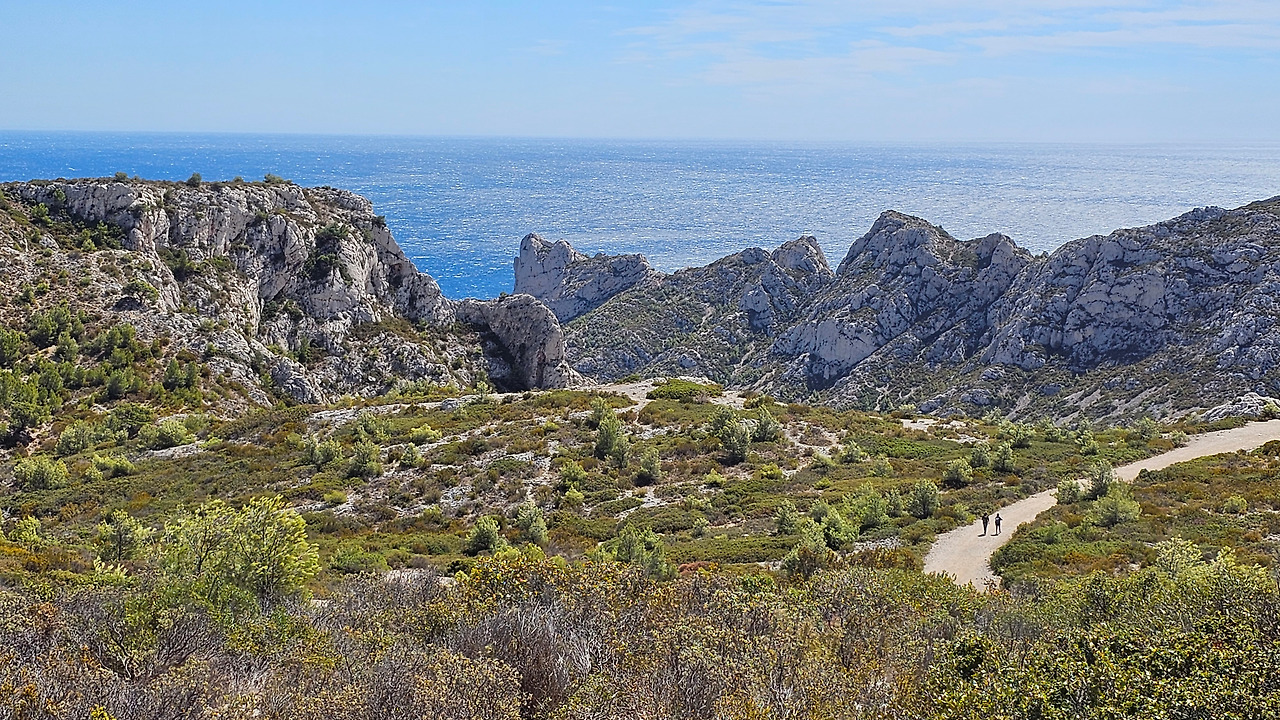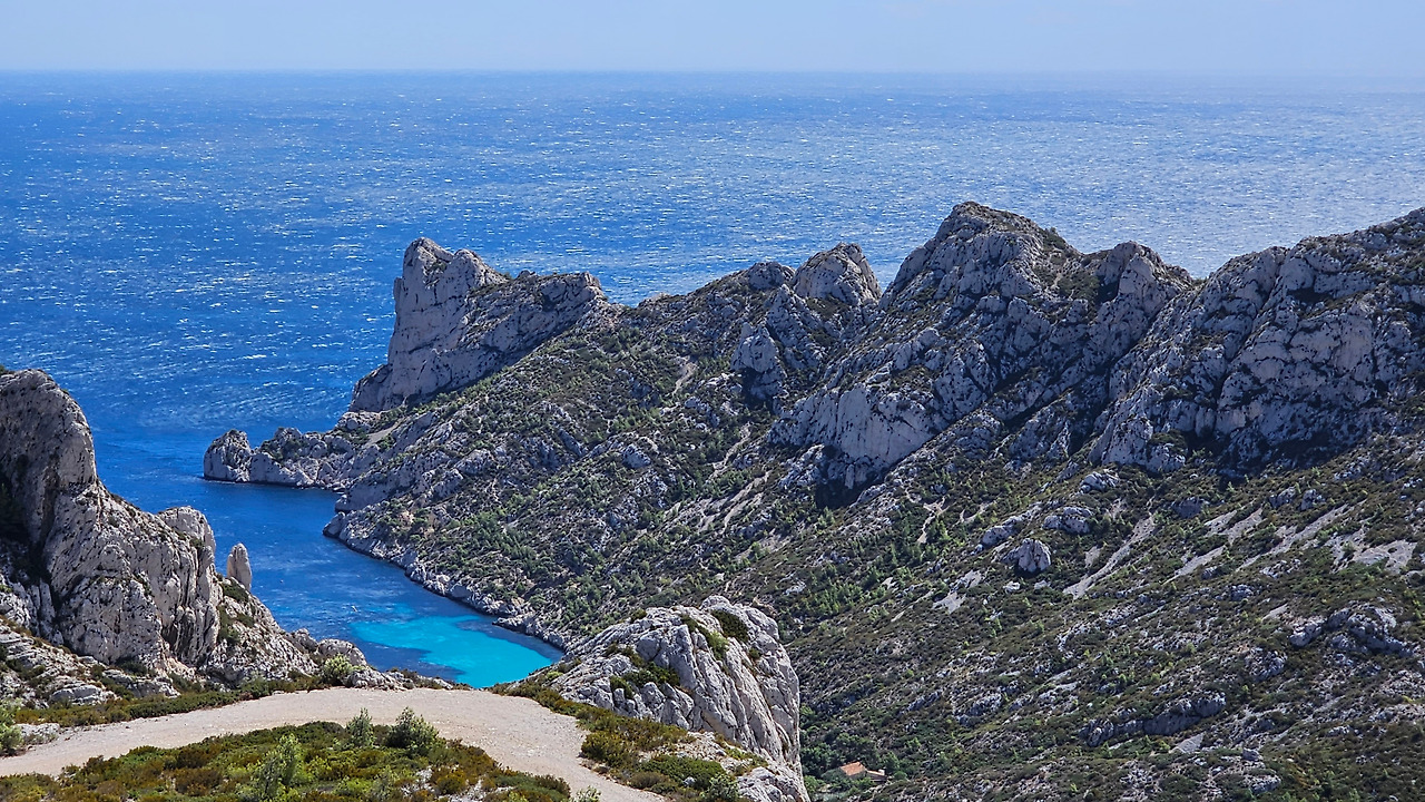 마르세유 근교 지중해 연안에 칼랑크 국립공원이 있다. 마르세유와 라 시오타(La Ciotat) 사이에 위치한다. 자동차 타이어를 수리한 뒤에 이곳으로 달려갔다. 대중교통을 이용하면 엄두도 못 낼 곳이다. 이곳을 몇 번 지나다녔으나 일정 관계로 한 번도 들어와 보지 못했는데, 이번에 온 것이다. 주차장에 차를 세우고 한참을 트레킹을 해야 하는 곳이다. 모든 산들이 석회암으로 만들어진 독특한 지질 구조이다. 칼랑크는 프랑스어로 작은 만(灣)을 나타낸다. 이곳 칼랑크 국립공원은 마르세유에서 라 시오타까지 20km가 넘는 길이로 보호되고, 엄격하게 관리되는 지역으로, 28개의 다양한 크기의 칼랑크 만(灣)이 있다. 마르세유 25개, 카시스 1개, 라 시오타에 2개가 있다. 접근이 쉬운 곳도 있고, 그렇지 않은 곳도 있지만, 마르세유를 방문한다면 칼랑크는 꼭 방문해야 절경을 즐길 수 있다.
