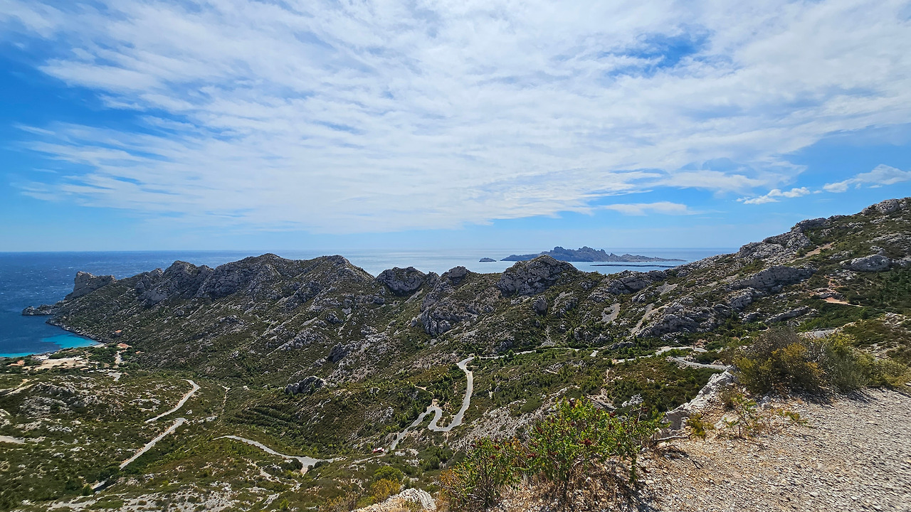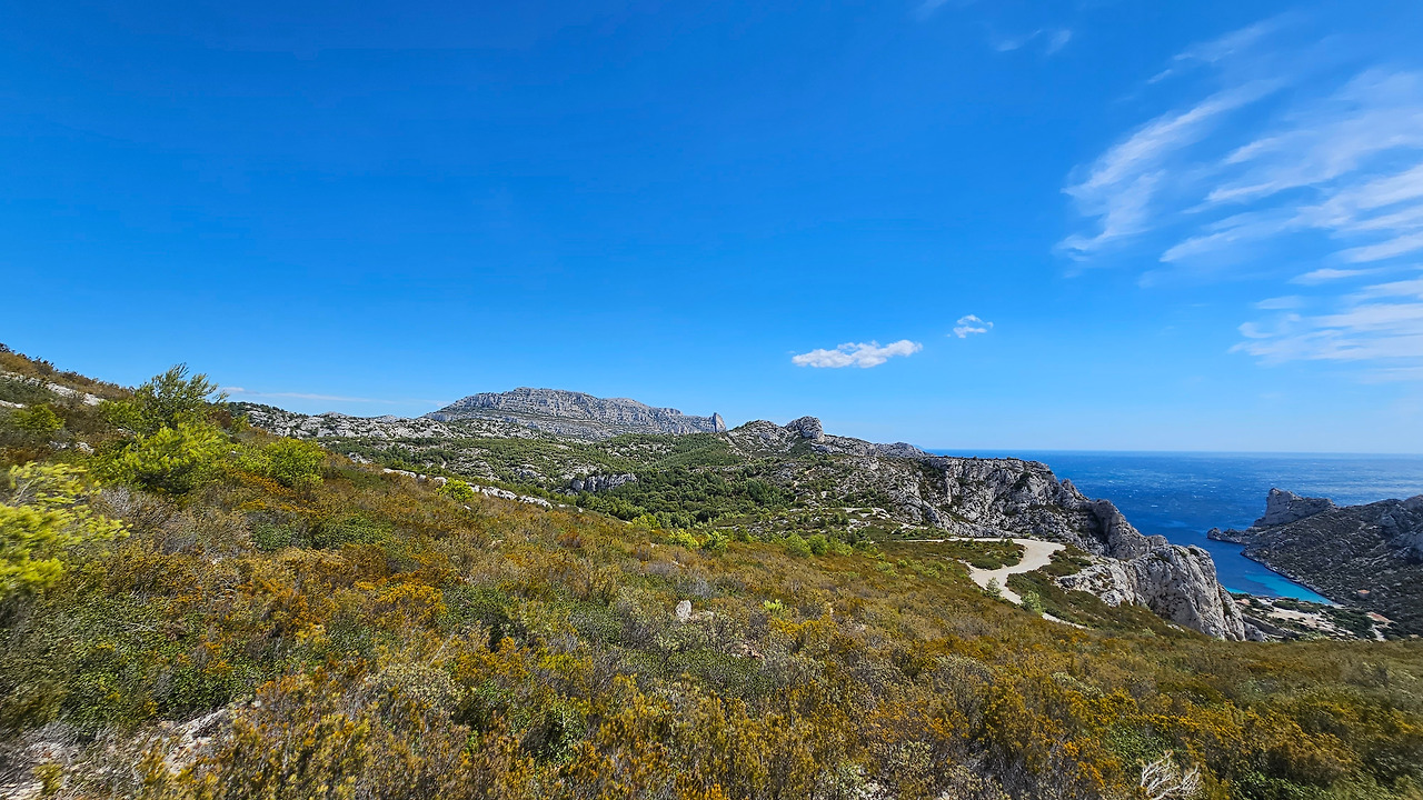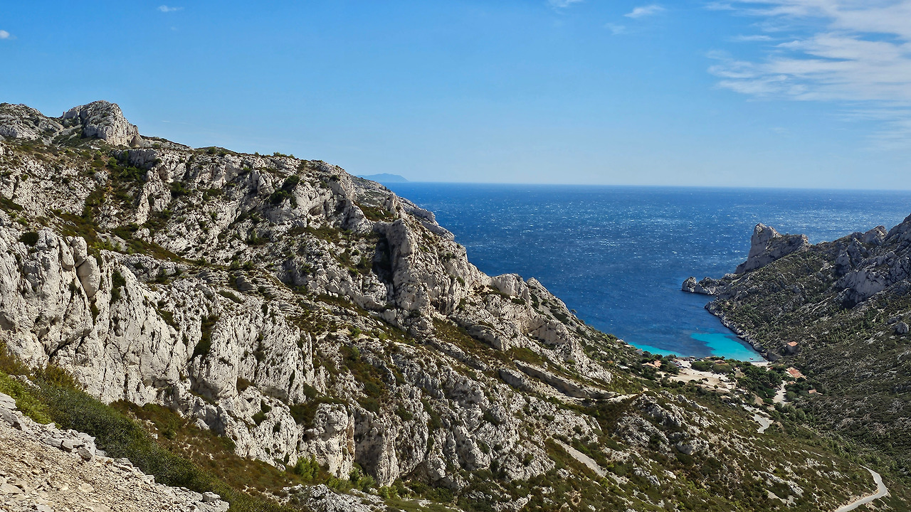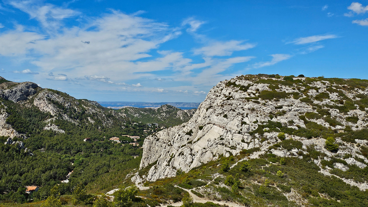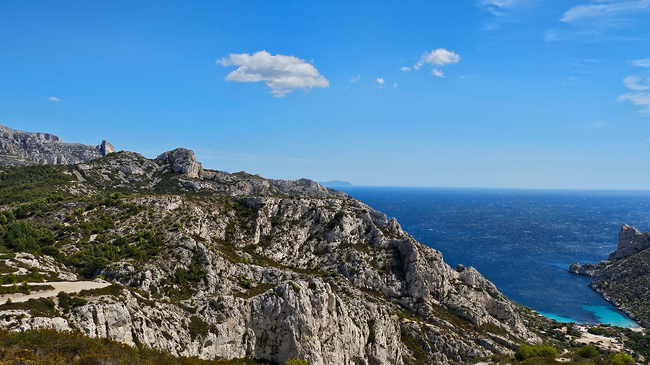 계곡길을 따라 한 40여 분간을 걸어 올라가면 전망대인 몽쮸줴(Mont Puget)에 도달할 수 있다. 바람이 잠잠해지면 주변을 전망하기 좋은 곳이다. 모르지우 곶(Cap Morgiou) 근처, 수심 약 37미터에 위치한 독특한 해저 동굴 '라 그로테 코스케르(La Grotte Cosquer)'에는 펭귄, 물개, 버펄로, 말, 사람, 손 등이 그려진 200여 점의 암벽화와 조각품이 있다고 한다. 이 그림들은 2만 5천 년 이상 된 것으로 추정된다. 금삿갓은 이곳에 가보지 못했다.