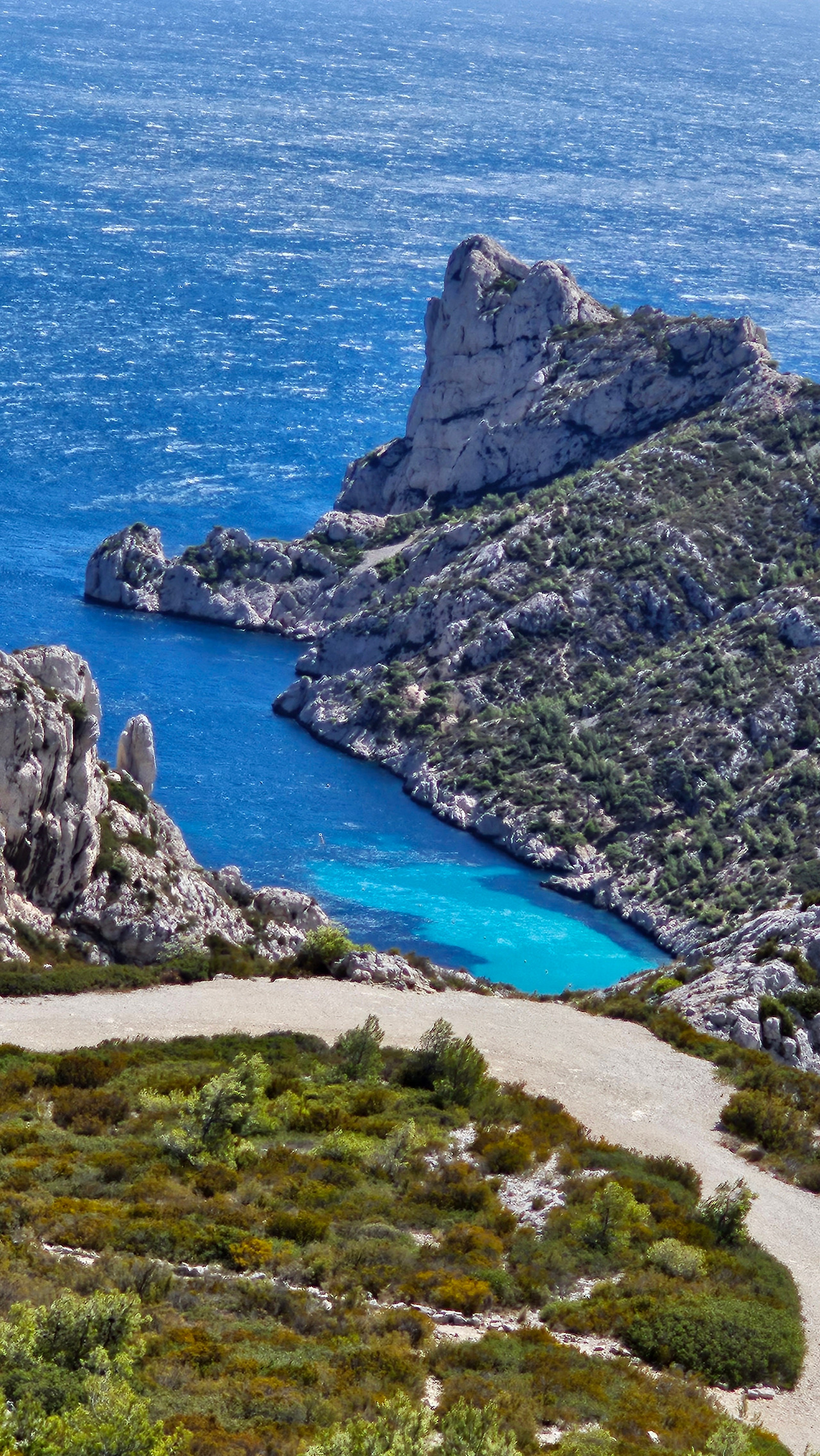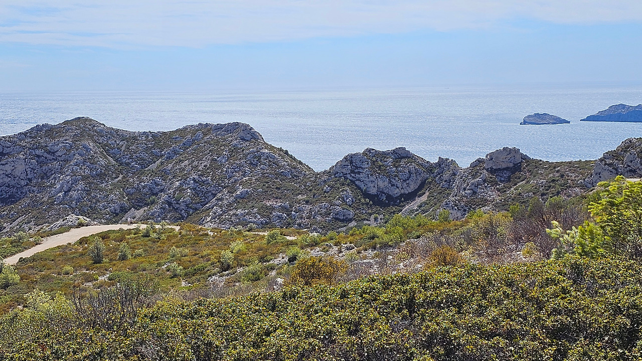 독특하고 숨 막힐 듯 아름다운 풍경은 마르세유에서 꼭 봐야 할 곳이다. 자갈과 고운 모래사장, 그리고 청록색 바닷물이 어우러진 작은 피오르까지, 이 생물 다양성의 보석은 마치 엽서에 그려진 그림처럼 아름답다. 일광욕을 즐기고, 해저를 탐험하거나, 카약과 같은 수상 스포츠를 즐기기에 더할 나위 없이 좋은 곳이다. 필자 금삿갓이 방문하던 날은 정말 날씨는 맑고 좋았는데, 바람이 장난이 아니었다. 트레킹으로 산의 정상 부근에 올랐을 때 바람이 너무 세서 서 있을 수가 없었다. 길옆의 낭떠러지, 칼바위 등 위험한기 그지없는데 바람까지 세차게 몰아치니 정신을 차릴 수가 없을 정도였다. 칼랑크 국립공원 곳곳에는 동식물이 가득하단다. 수중 생물도 너무나 다양해서 문어, 말미잘, 성게, 도미, 숭어는 물론, 뾰족주둥이놀래기, 안장도미, 그루퍼(Groupers)까지 서식하는 수중 정원에 비유할 수 있다고 한다. 청록색 바닷물에는 모래사장이 드러나는데, 이는 다양한 종의 서식지인 수생 꽃식물 포시도니아의 남색과 대조를 이룬다. 국립공원 규정상 보트 출입은 제한적이며, 모든 종류의 낚시는 금지되어 있단다.