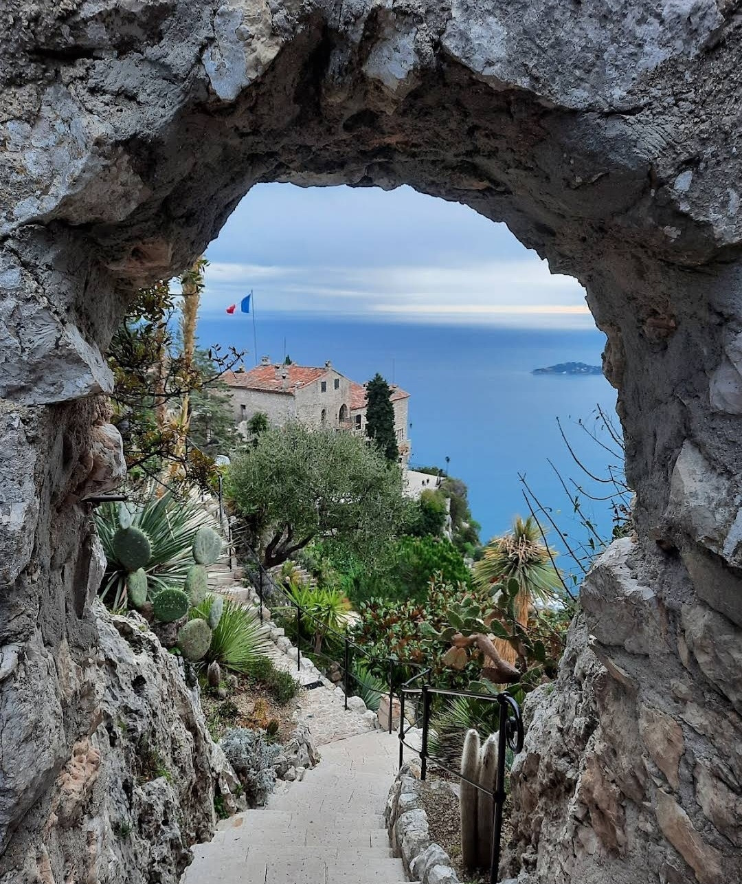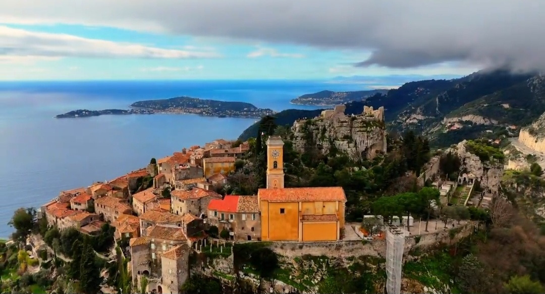 <하늘에서 본 에즈 마을과 지중해>