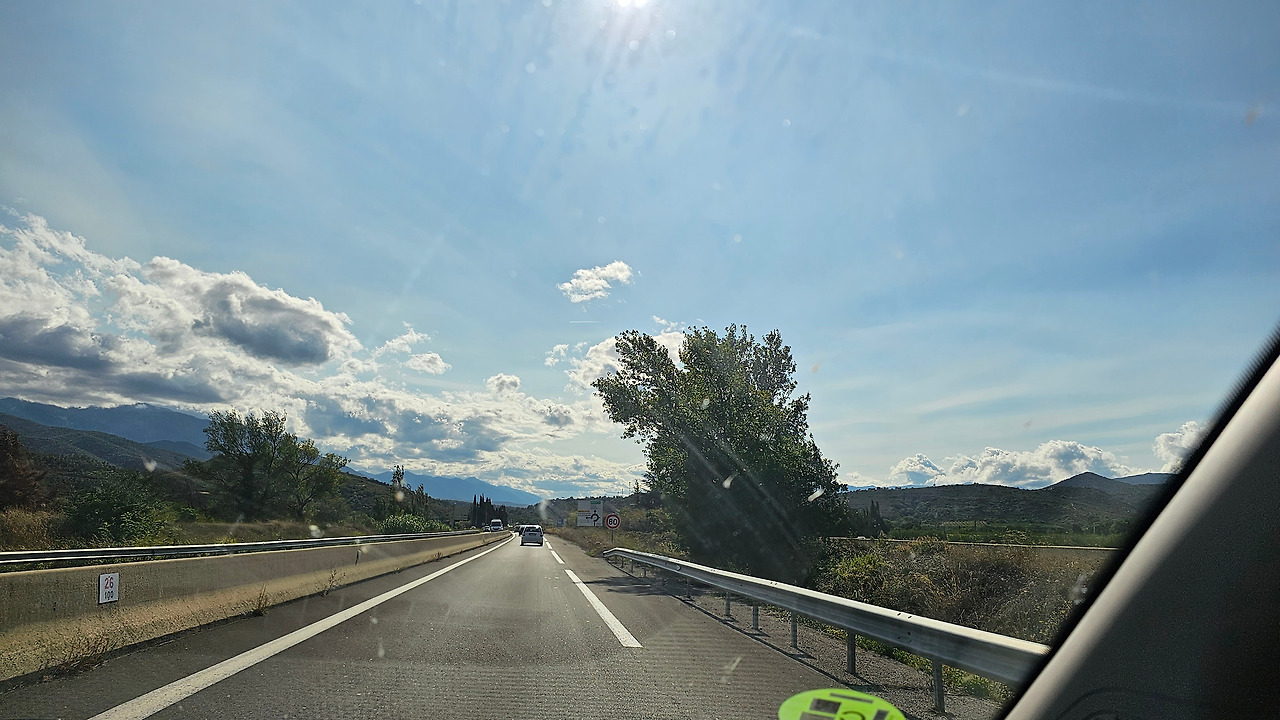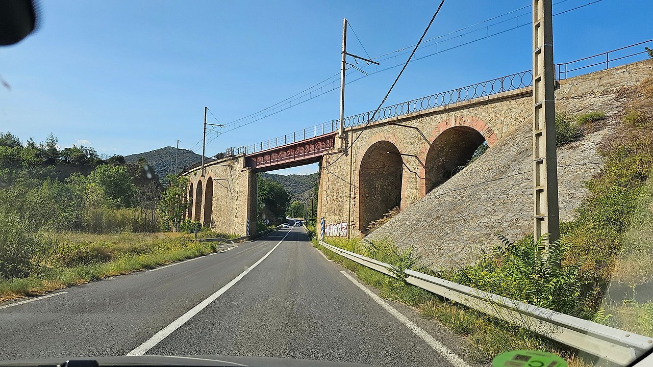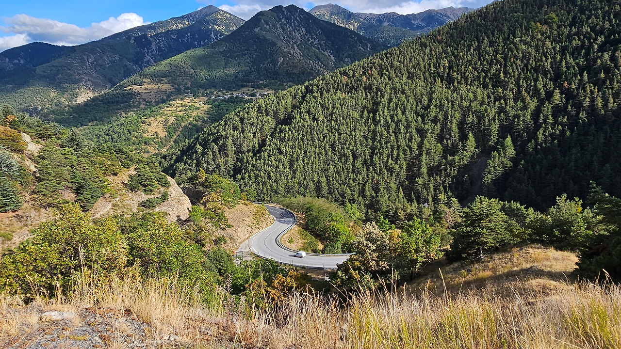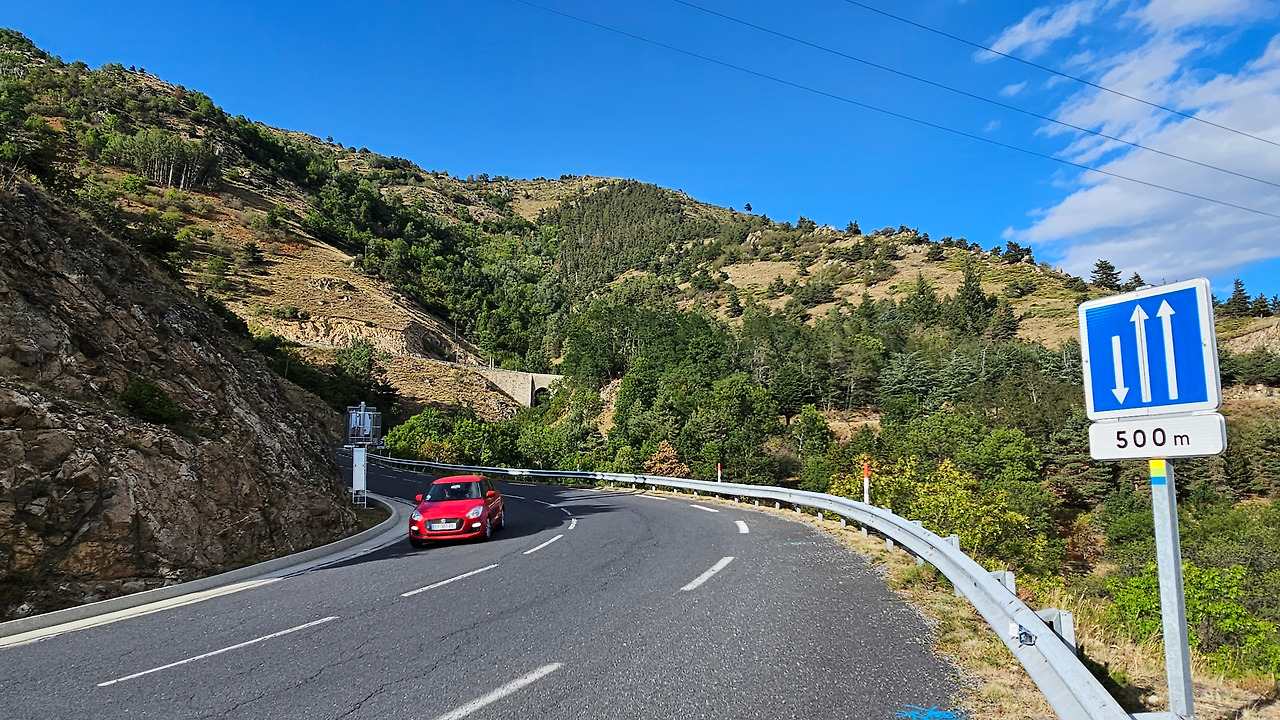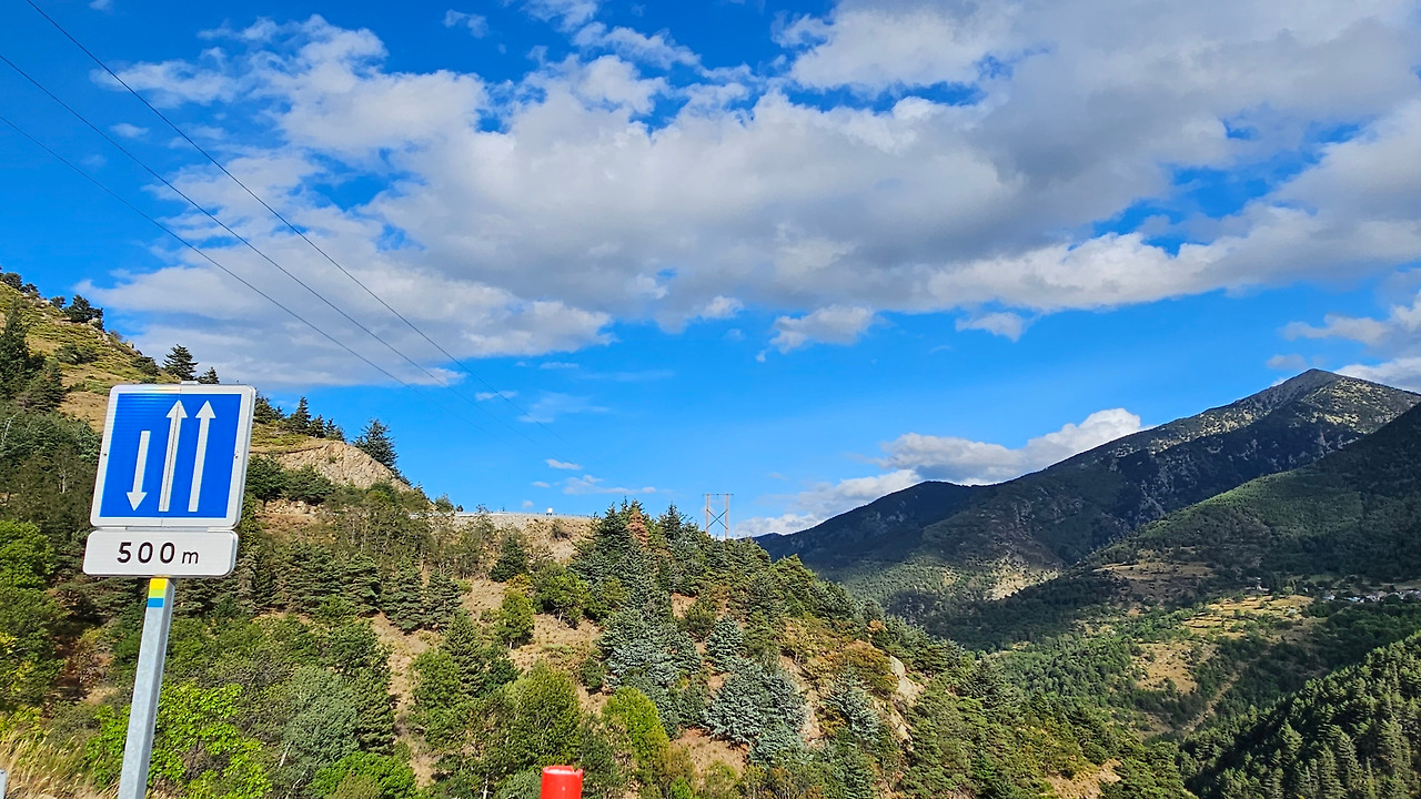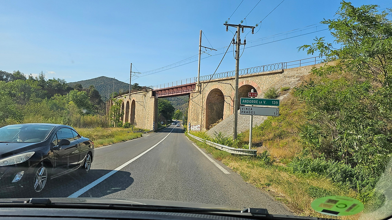 점점 산속으로 깊이 들어가면서 고도(高度)도 높아지고 세르디냐(Serdinya)를 지나 카탈루냐 피레네 공원 지역에 진입한다. 피레네 산속의 계곡 경치가 장관이다. 생장 삐에드뽀르에서 걸어서 스페인으로 넘어갈 때는 산 능선을 따라 넘었는데, 초원과 양 떼, 말 목장 등으로 이곳과는 판이하게 다르다. 여기는 계곡을 따라 올라가면서 굽이굽이 돌아서 충북 보은의 12 구비 말티고개를 오르는 것 같다. 중간중간 경치가 좋은 곳에서 뷰를 볼 수 있도록 전망 포스트도 있다.