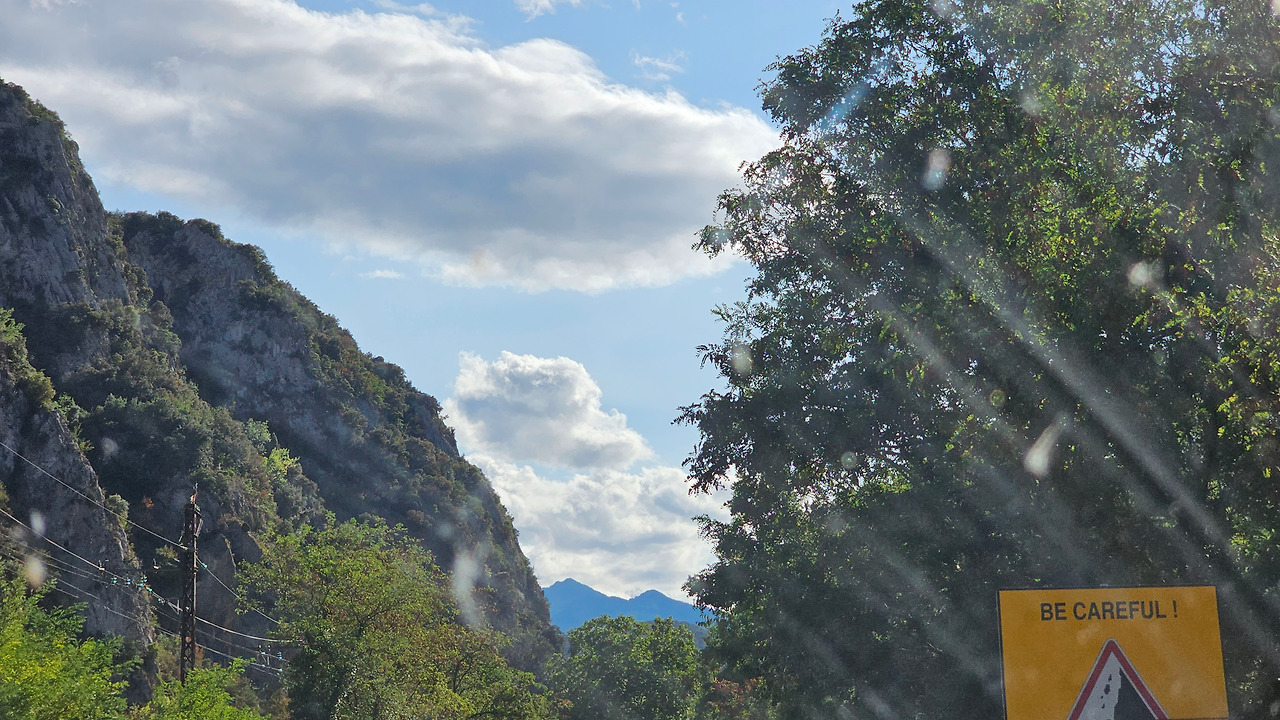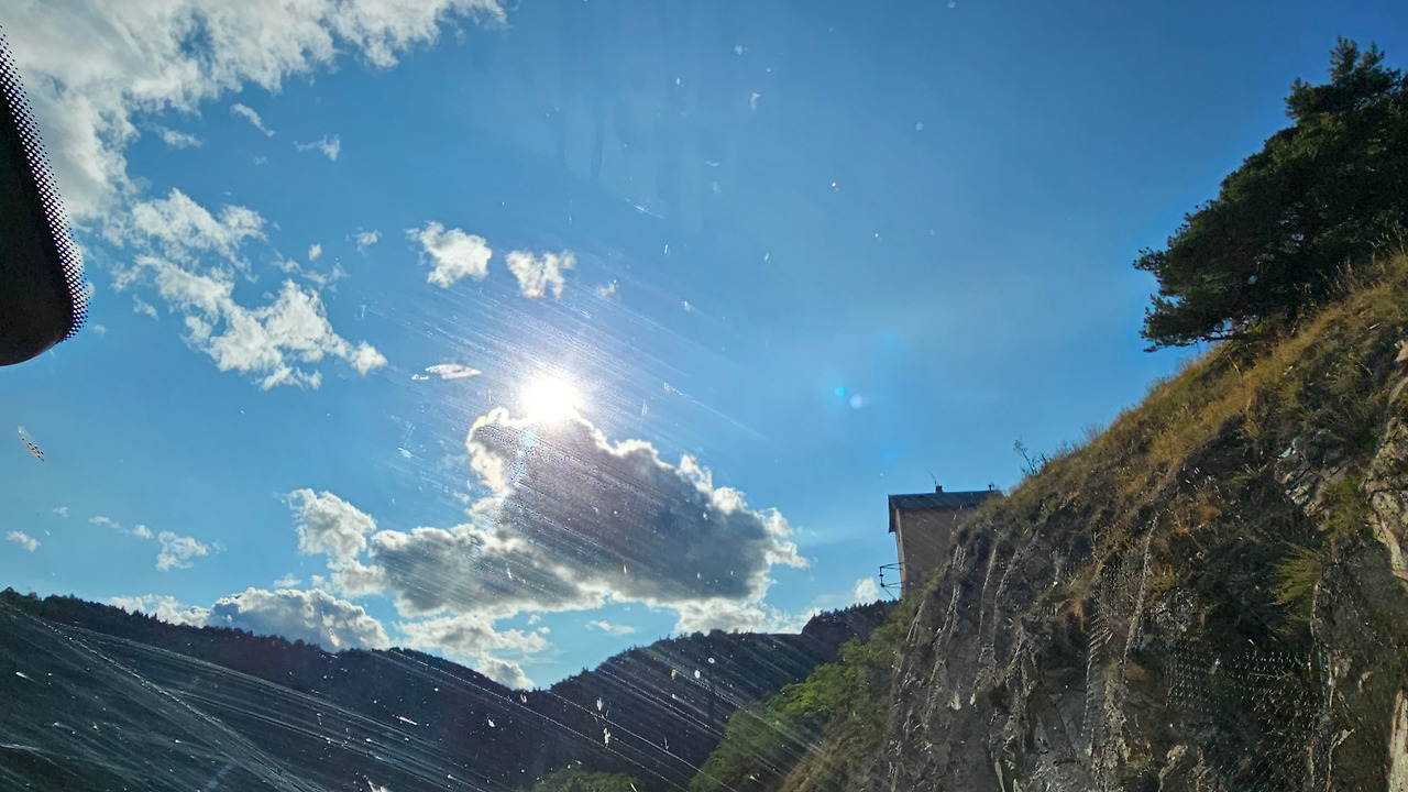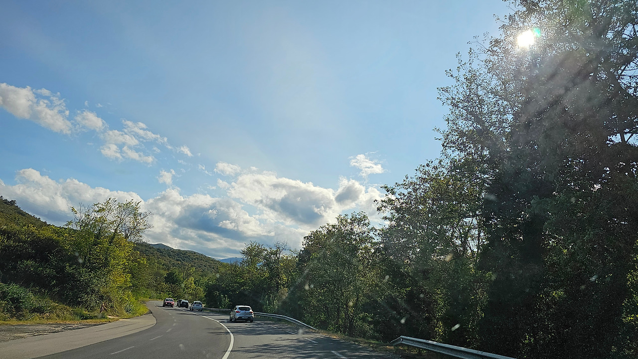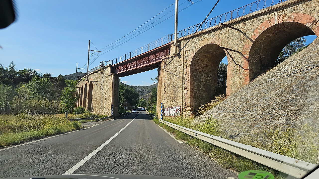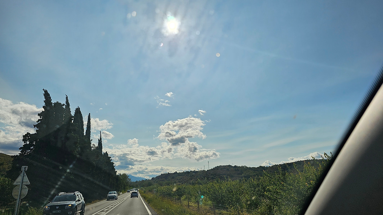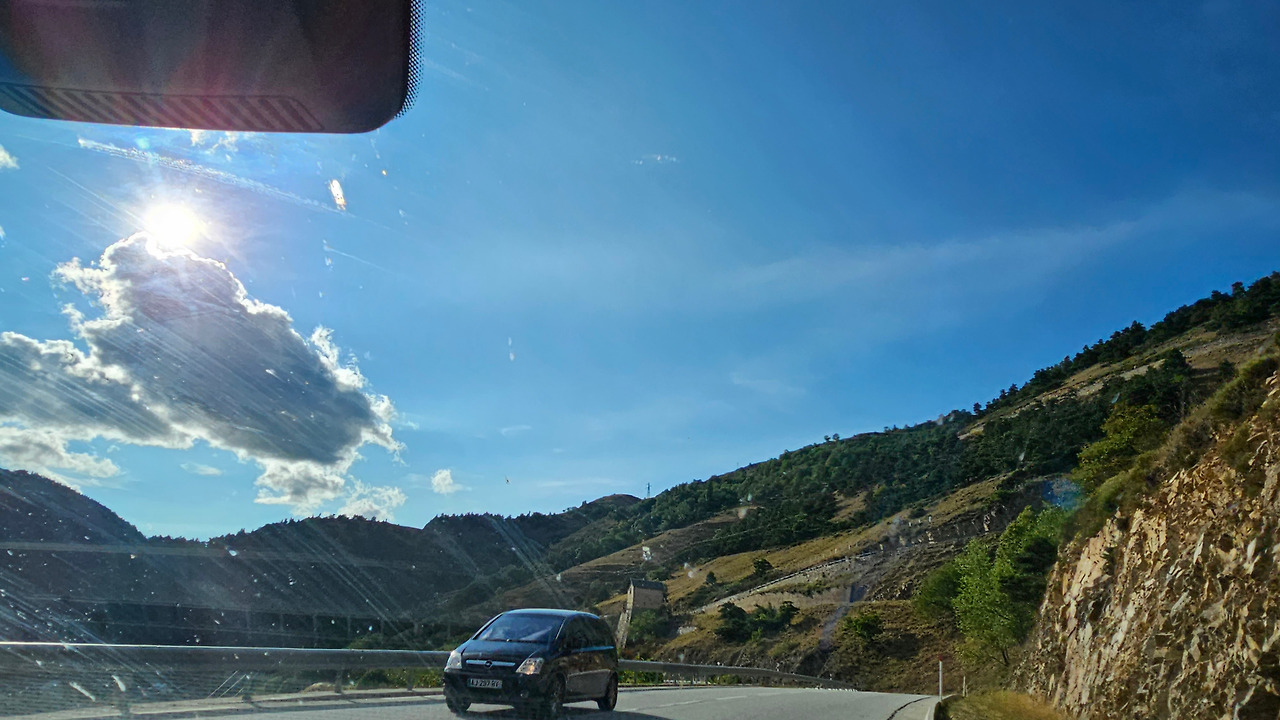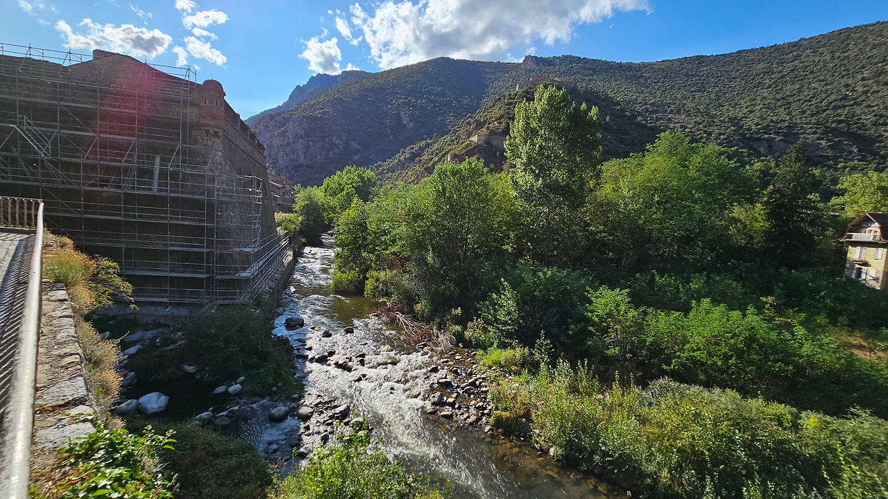 점점 산속으로 깊이 들어가면서 고도(高度)도 높아지고 세르디냐(Serdinya)를 지나 카탈루냐 피레네 공원 지역에 진입한다. 피레네 산속의 계곡 경치가 장관이다. 생장 삐에드뽀르에서 걸어서 스페인으로 넘어갈 때는 산 능선을 따라 넘었는데, 초원과 양 떼, 말 목장 등으로 이곳과는 판이하게 다르다. 여기는 계곡을 따라 올라가면서 굽이굽이 돌아서 충북 보은의 12 구비 말티고개를 오르는 것 같다. 중간중간 경치가 좋은 곳에서 뷰를 볼 수 있도록 전망 포스트도 있다.