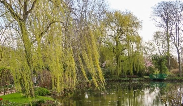 늦은 봄의 아지랑이가 피는 날씨에 연못가의 수양버들은 물속으로 늘어져 있는데 초승달은 떠서 물 위에 비치는 모습이다. 수양(垂楊) 버들은 가지가 거꾸로 내려오므로 도류(倒柳)라고도 한다. 멀리서 소쩍새가 구슬프게 울면서 짝을 구하는 소리가 들리니, 옛 전설상의 두우라는 어리석은 임금의 이야기가 머릿속을 맴돈다. 예로부터 두견새의 사연은 문학 작품에서 많이 활용되는 아이템이다.