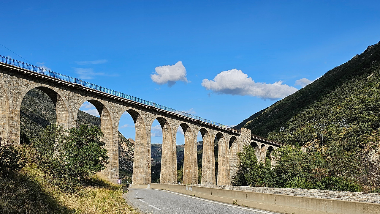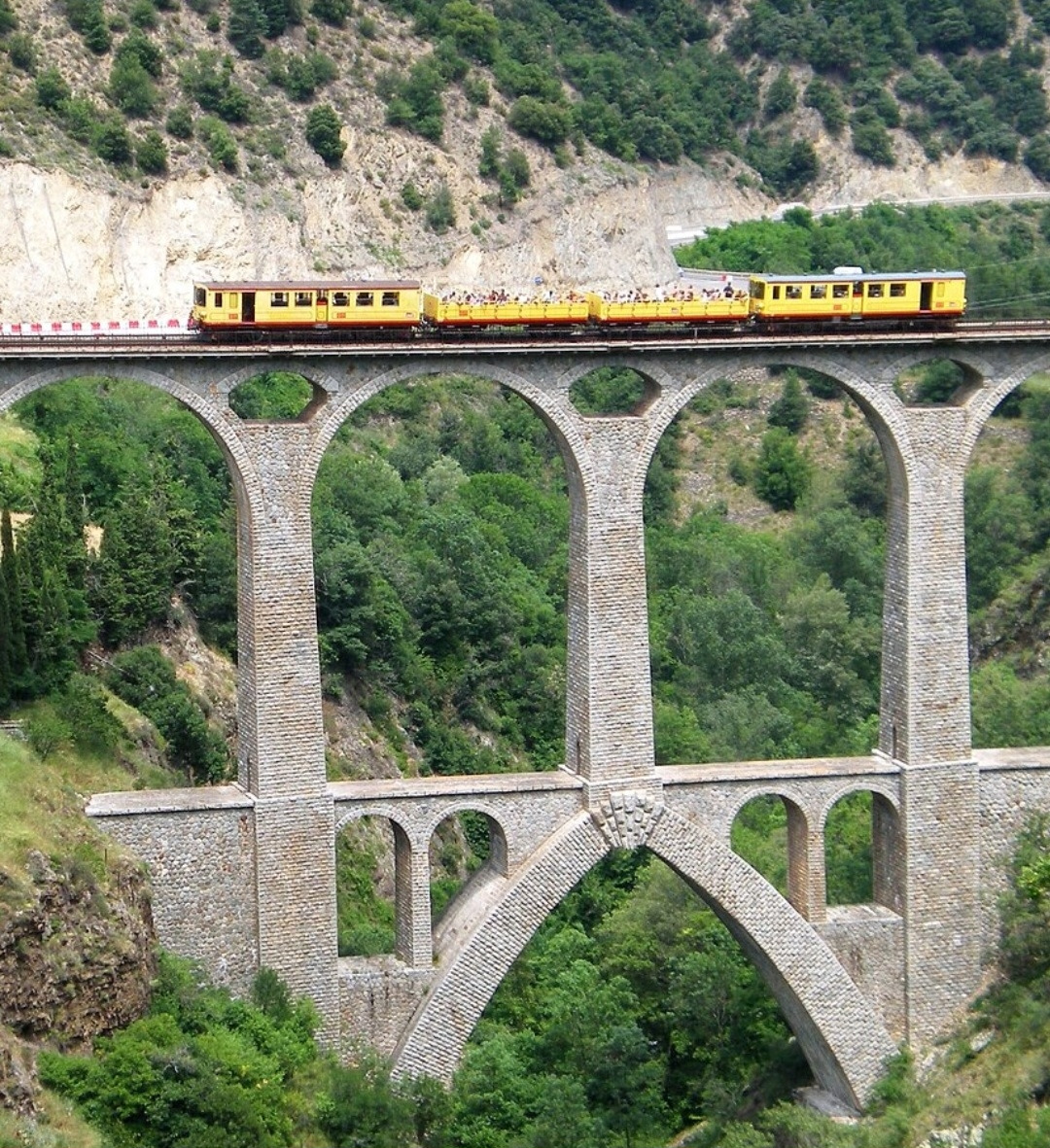 프랑스 페르피냥(Perpignan)에서 안도라로 가려면 피레네 산을 넘어야 하는데, 산의 계곡에 이름다운 다리 퐁 세주르네(Pont Sejourne)가 있다. 행정구역은 피레네 조리앙탈주이고 테크(Tet) 강을 건너는 다리이다. 마을 이름을 따서 퐁페데루주(Fontpedrouse) 다리라고도 한다. 건축가 폴 세주르네(Paul Sejourne)가 설계를 하고 건축해서 붙은 이름이다. 1908년에 험한 협곡 위에 이런 석조교량을 세웠으니 그 기술이 뛰어나다. 철도의 교량으로 건설된 것이고 이 길로 노란색 칠을 한 동화 속에 나올 듯한 열차가 지나다닌다. 프랑스 역사적 기념물로 지정되어 있다. 다리의 구조의 2층으로 설계되어 있고, 교량의 길이는 237m이고, 높이는 65m이다. 금삿갓이 운전하면서 보기에 너무나 아름다워서 차를 세우고 이리저리 사진도 찍고 한참을 구격을 했다. 지나가는 대부분의 차량들도 마찬가지다.