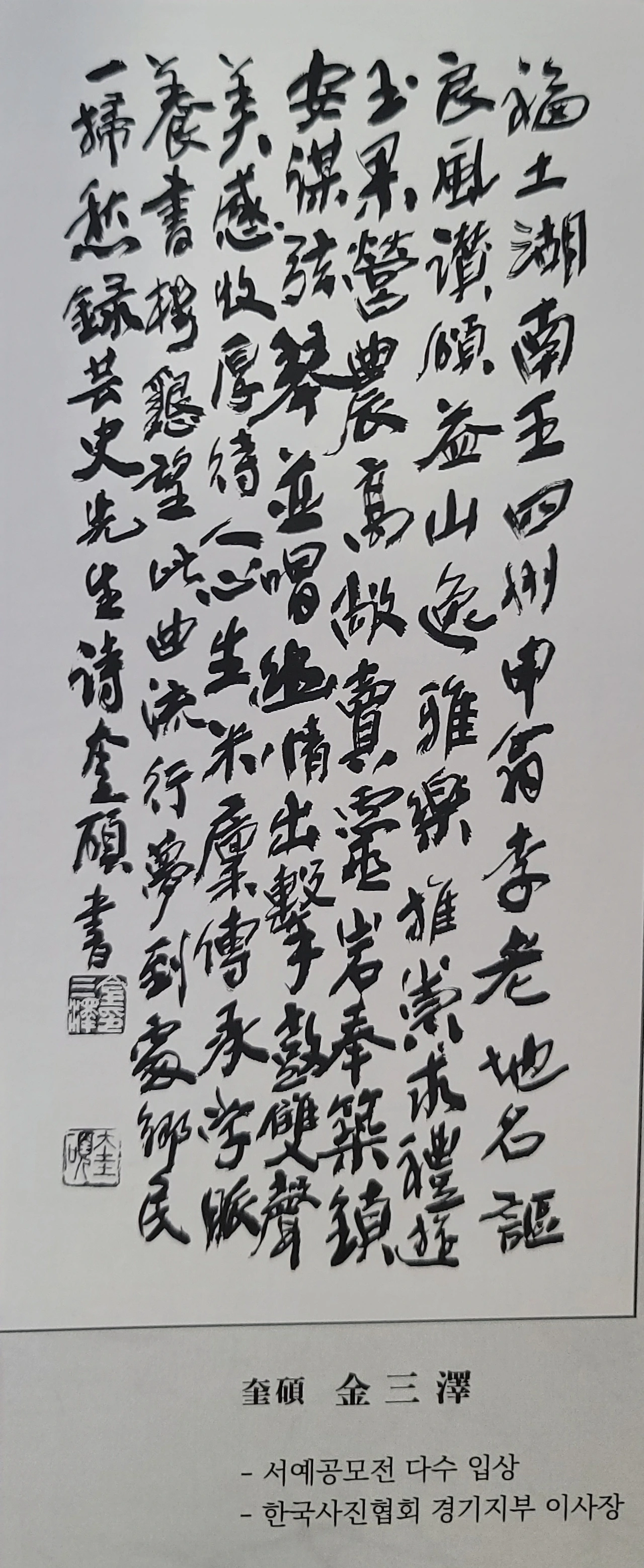 <금삿갓의 졸시를 규산 김삼택 선생이 휘호한 작품>
