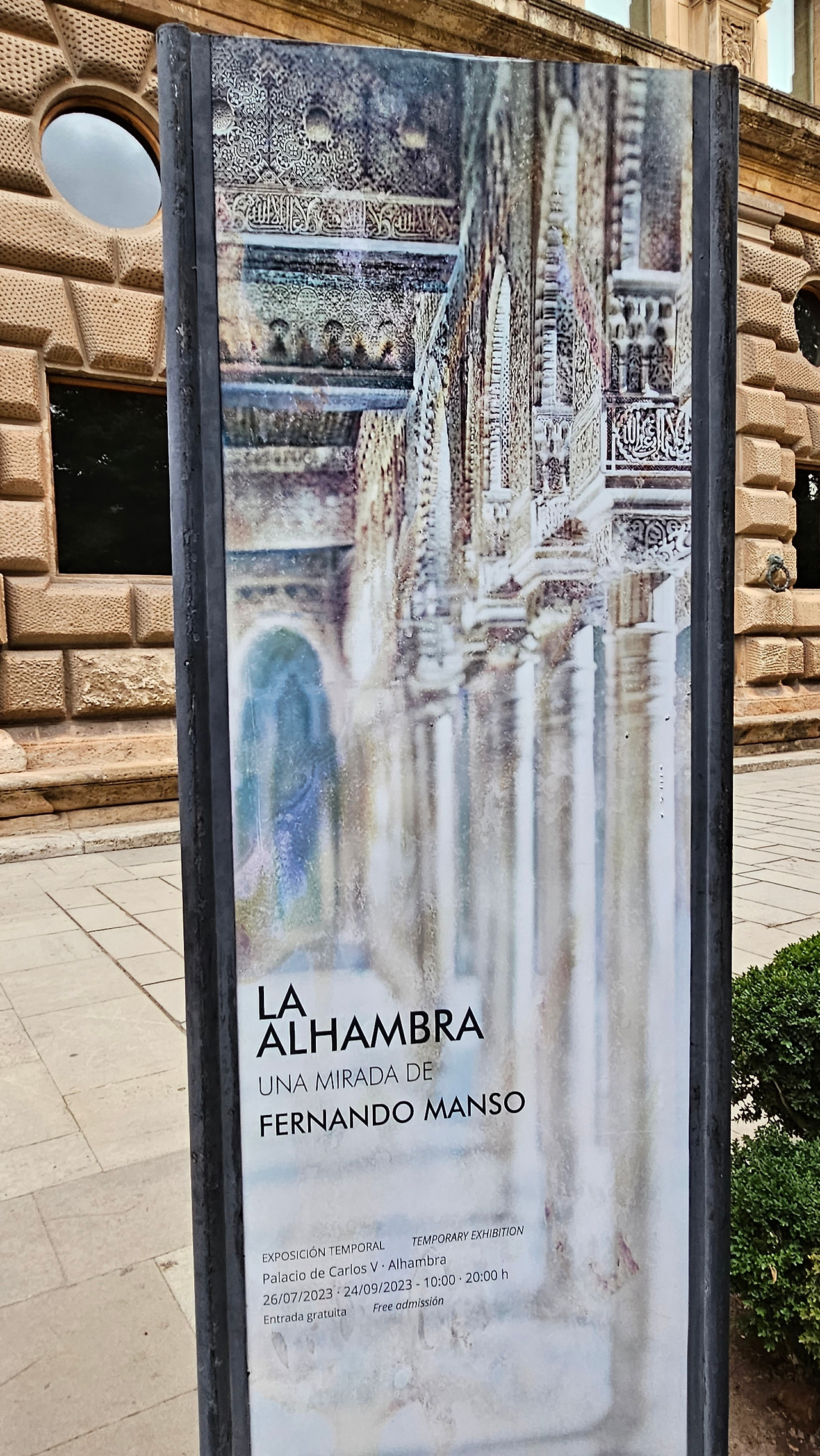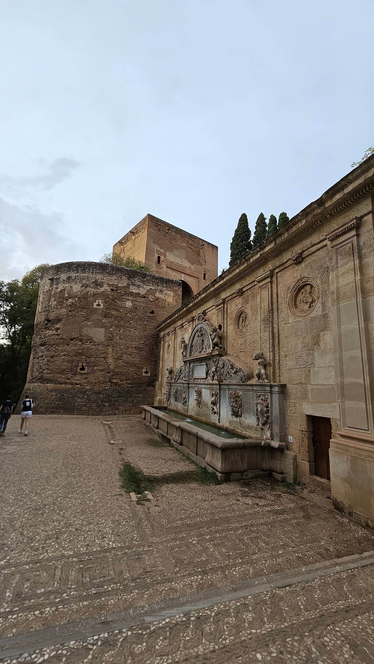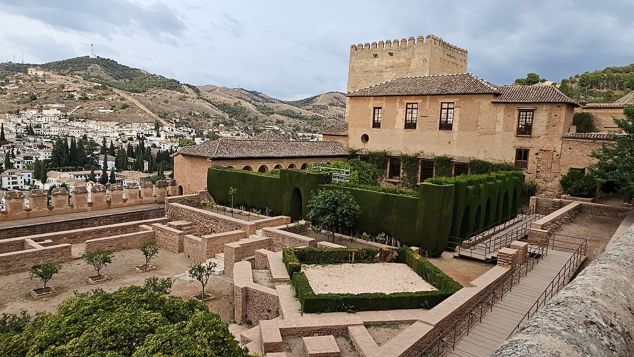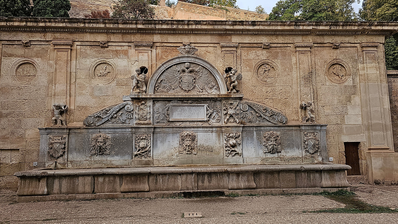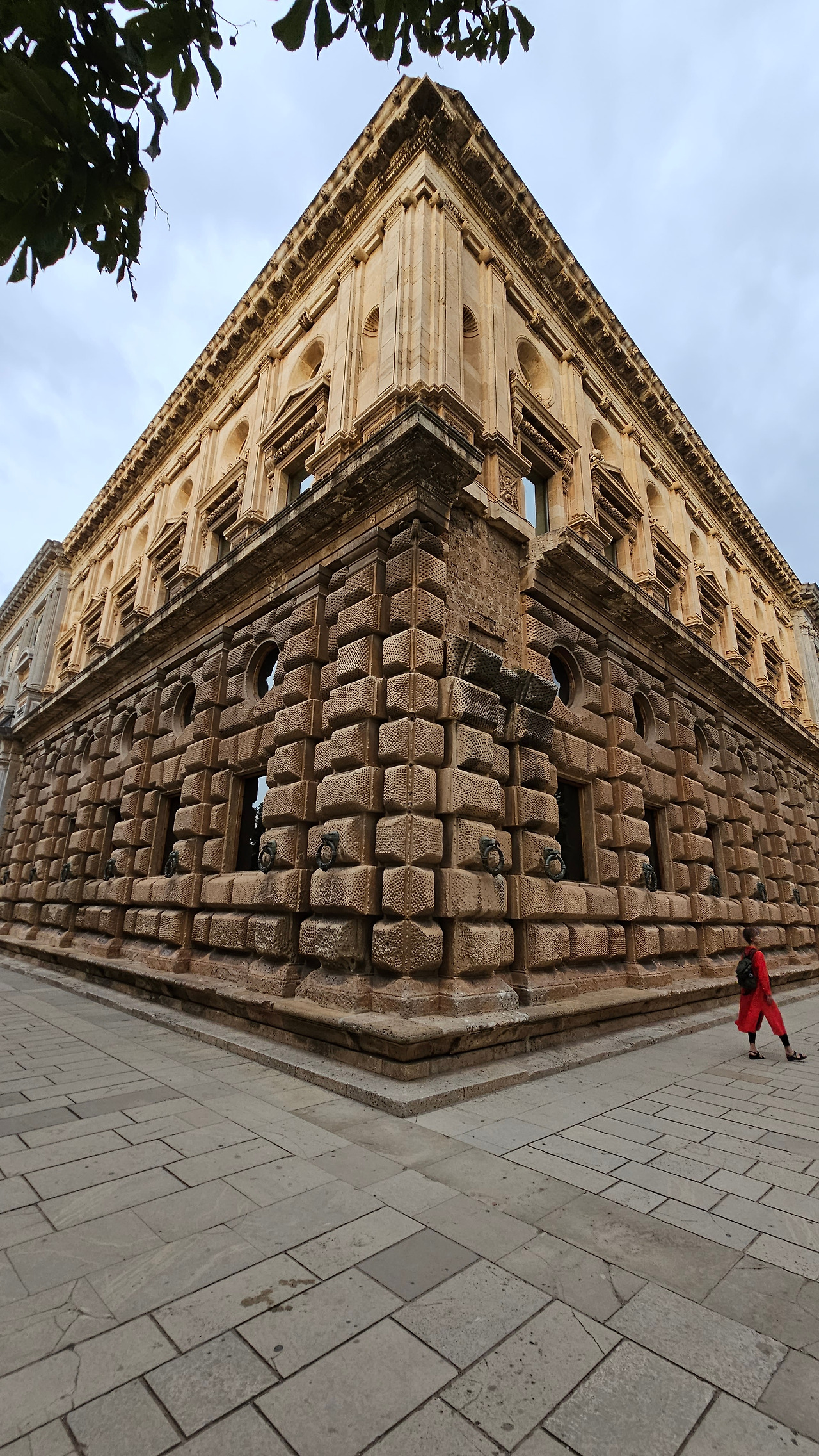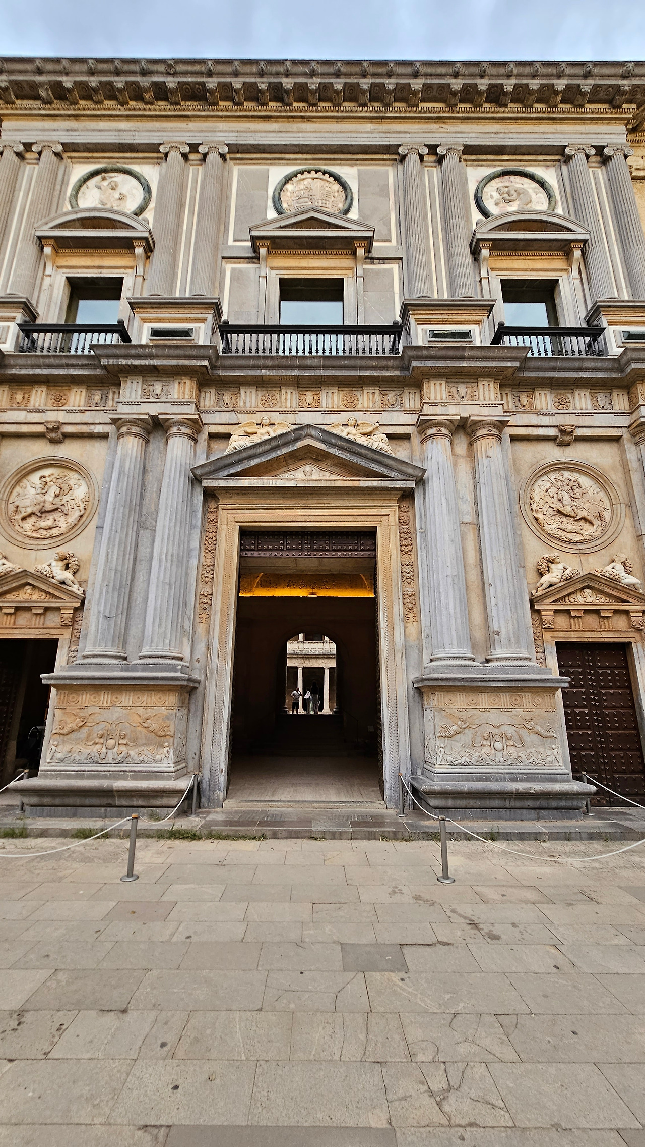 스페인 국왕이자 독일 황제 선출자인 카를로스(Carlos) 5세는 1526년 세비야에서 포르투갈의 이사벨(Isabel)과 결혼한 후 그라나다를 방문했다. 그때 그는 알람브라 궁전에 자신의 왕궁을 건설하기로 결정했다. 황제는 궁전을 로마 양식으로 건설하기로 결정했는데, 이는 아마도 알람브라 총독이자 카스티야에서 이탈리아 문화를 수용하는 데 중요한 역할을 했던 루이스 우르타도 데 멘도사(Luis Hurtado de Mendoza) 장군의 영향을 받았을 것으로 보인다. 하지만 이 궁전의 원형은 라파엘로와 줄리오 로마노의 친구였던 발다사레 카스틸리오네(Baldasare Castiglione)가 제안했을 가능성이 있다고 한다. 원래 프로젝트는 레오 10세의 로마 예술계에서 수학한 페드로 마추카(Pedro Machuca)가 설계했다. 그는 1533년부터 1550년(그가 사망한 해)까지 공사를 지휘했으며, 서쪽과 남쪽 문을 제외한 모든 외관은 완성되었다. 그의 뒤를 이어 아들 루이스가 원형 안뜰을 설계했지만, 1568년 그라나다에서 모리스코족의 반란으로 15년간 공사가 중단되었다. 1619년 안뜰의 상부 주랑이 완공되었고, 1637년까지 공사가 계속되었지만 예산상의 문제 등으로 이때부터 공사가 중단되었다. 궁전은 1923년까지 미완성 상태로 남아 있었는데, 레오폴도 토레스 발바스(Leopoldo Torres Balbás)가 박물관으로 사용하기 위한 복원 계획을 시작하면서 1958년 건축가 프란시스코 프리에토 모레노(Francisco Prieto Moreno)가 완공했다. 궁전의 양식적 선택은 평면도의 독창성, 정사각형 안에 내접하는 원, 그리고 르네상스 전성기 건축 양식의 사용을 통해 "로마 양식" 건축을 표현하고자 하는 확고한 열망에 기반했다. 필자 금삿갓의 눈에는 원형의 열주(列柱)가 정교하게 세워져 있는 파티오가 매우 인상적이었다.