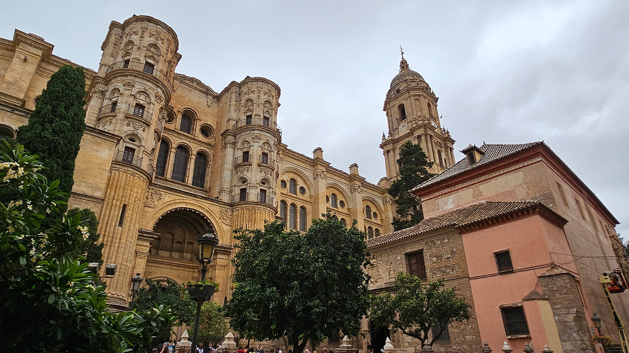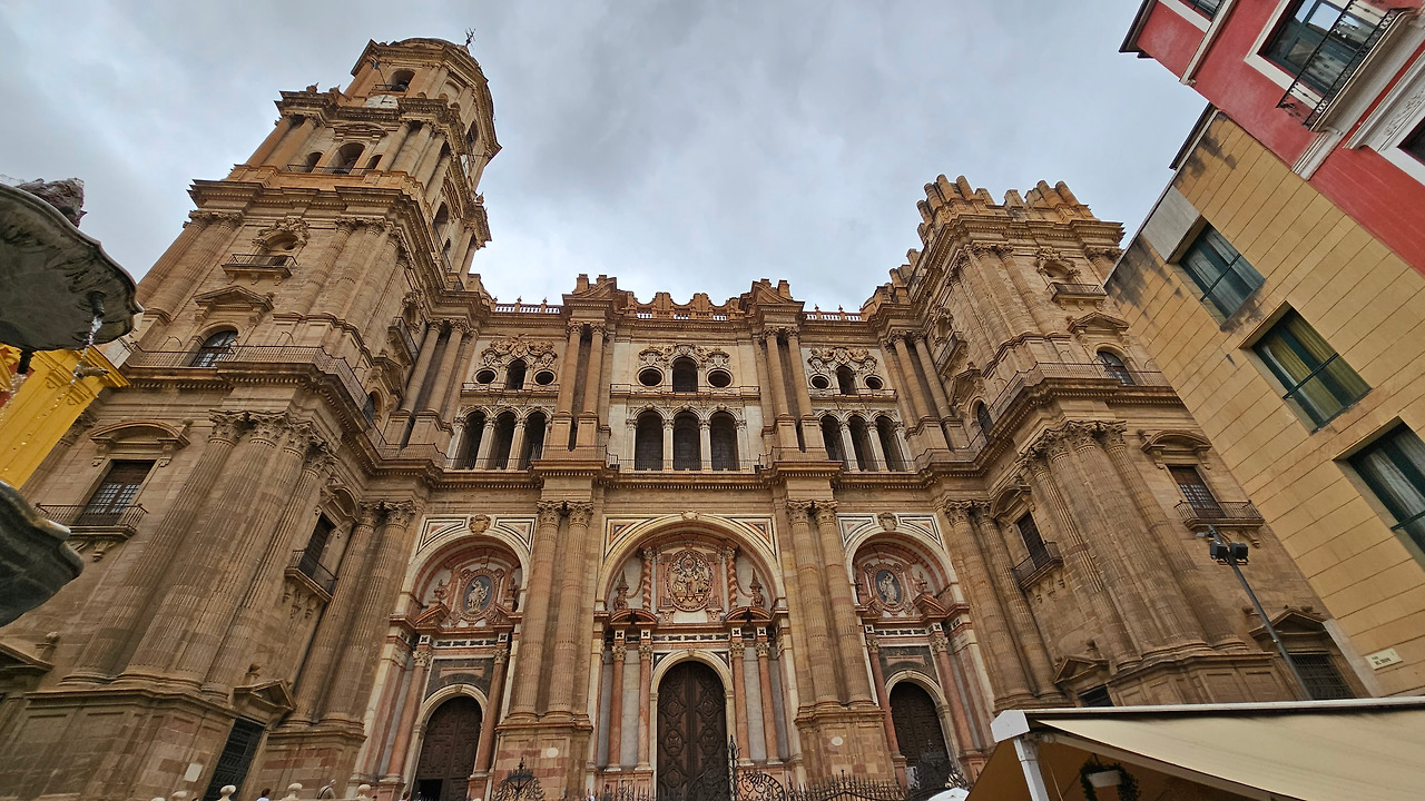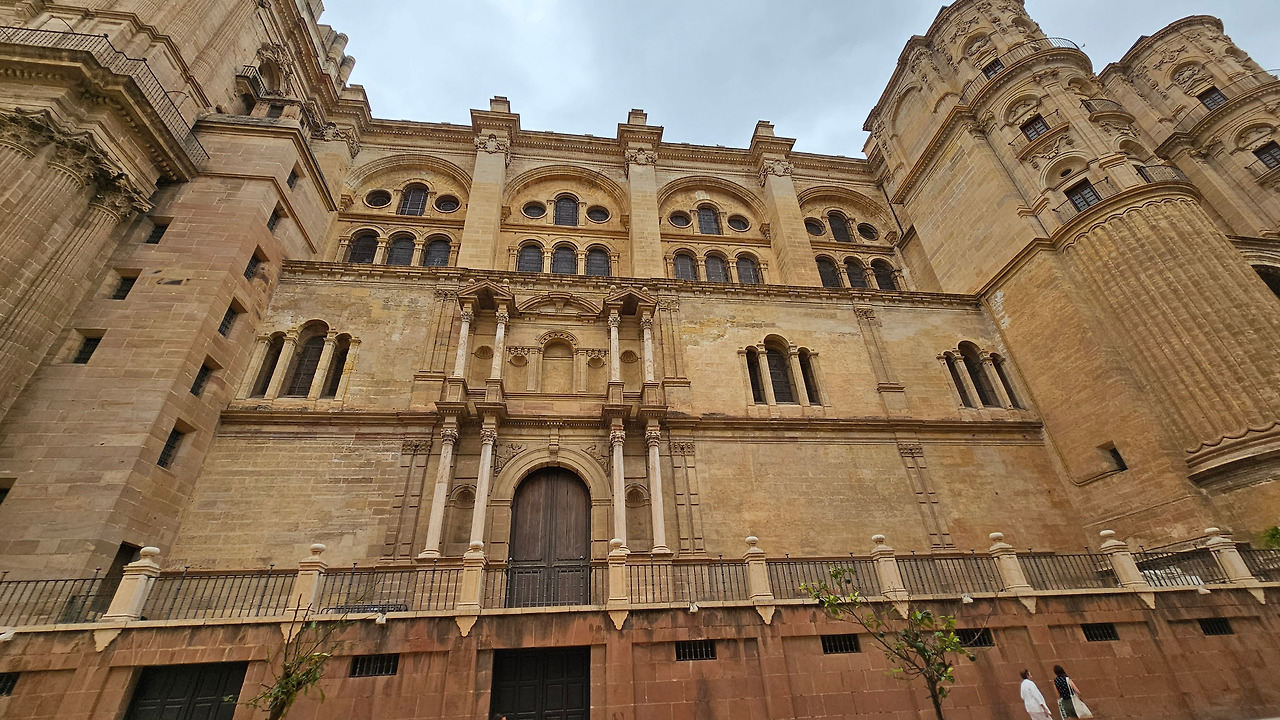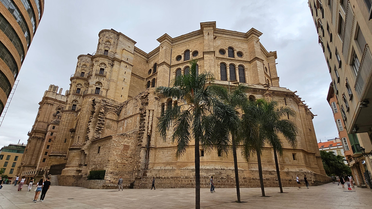 말라가 대성당은 공식 명칭이 산타 이글레시아 대성당(Basílica de la Encarnación)이다. 르네상스 건축 양식을 따르고 있는데, 이 대성당은 중세 무어 양식 성벽의 현재 일부만 남아 있는 구역 내에 위치하고 있다. 그 잔해는 인근 알카사바와 히브랄파로 성을 둘러싸고 있다. 1528년에서 1782년 사이에 디에고 데 실로에(Diego de Siloe)가 설계한 설계도를 따라 건축되었으며, 내부 또한 르네상스 양식이다. 엄청난 공사 비용을 충당하기 위해 왕위 계승 전쟁 이후, 왕실은 말라가에 입항하는 배에 항구세를 부과하여, 배에 실은 짐의 무게인 아로바(arroba) 당 세금을 요구했다. 미국과의 자유 무역이 성행해 지자 거두어들이는 세금이 많아져서 공사의 진척이 빨랐다고 한다. 그러다가 미국의 독립 전쟁 발발과 스페인의 미국 지지로 건축이 지연되었다. 그러다 보니 약 260년의 세월 동안 공사를 한 것이다.