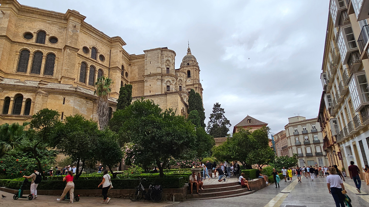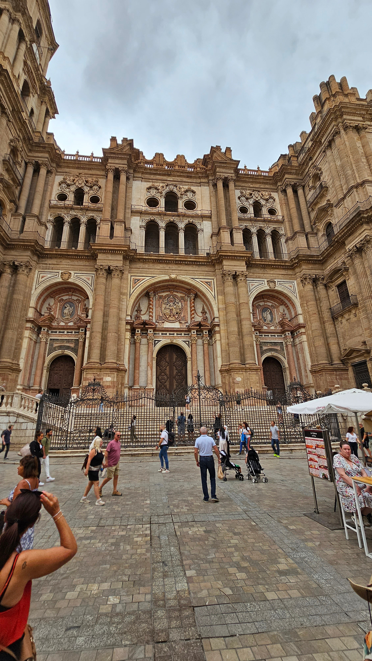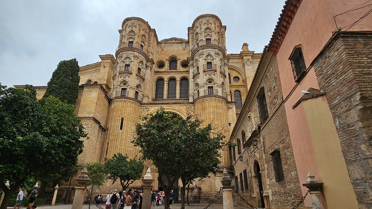 말라가 대성당은 공식 명칭이 산타 이글레시아 대성당(Basílica de la Encarnación)이다. 르네상스 건축 양식을 따르고 있는데, 이 대성당은 중세 무어 양식 성벽의 현재 일부만 남아 있는 구역 내에 위치하고 있다. 그 잔해는 인근 알카사바와 히브랄파로 성을 둘러싸고 있다. 1528년에서 1782년 사이에 디에고 데 실로에(Diego de Siloe)가 설계한 설계도를 따라 건축되었으며, 내부 또한 르네상스 양식이다. 엄청난 공사 비용을 충당하기 위해 왕위 계승 전쟁 이후, 왕실은 말라가에 입항하는 배에 항구세를 부과하여, 배에 실은 짐의 무게인 아로바(arroba) 당 세금을 요구했다. 미국과의 자유 무역이 성행해 지자 거두어들이는 세금이 많아져서 공사의 진척이 빨랐다고 한다. 그러다가 미국의 독립 전쟁 발발과 스페인의 미국 지지로 건축이 지연되었다. 그러다 보니 약 260년의 세월 동안 공사를 한 것이다.